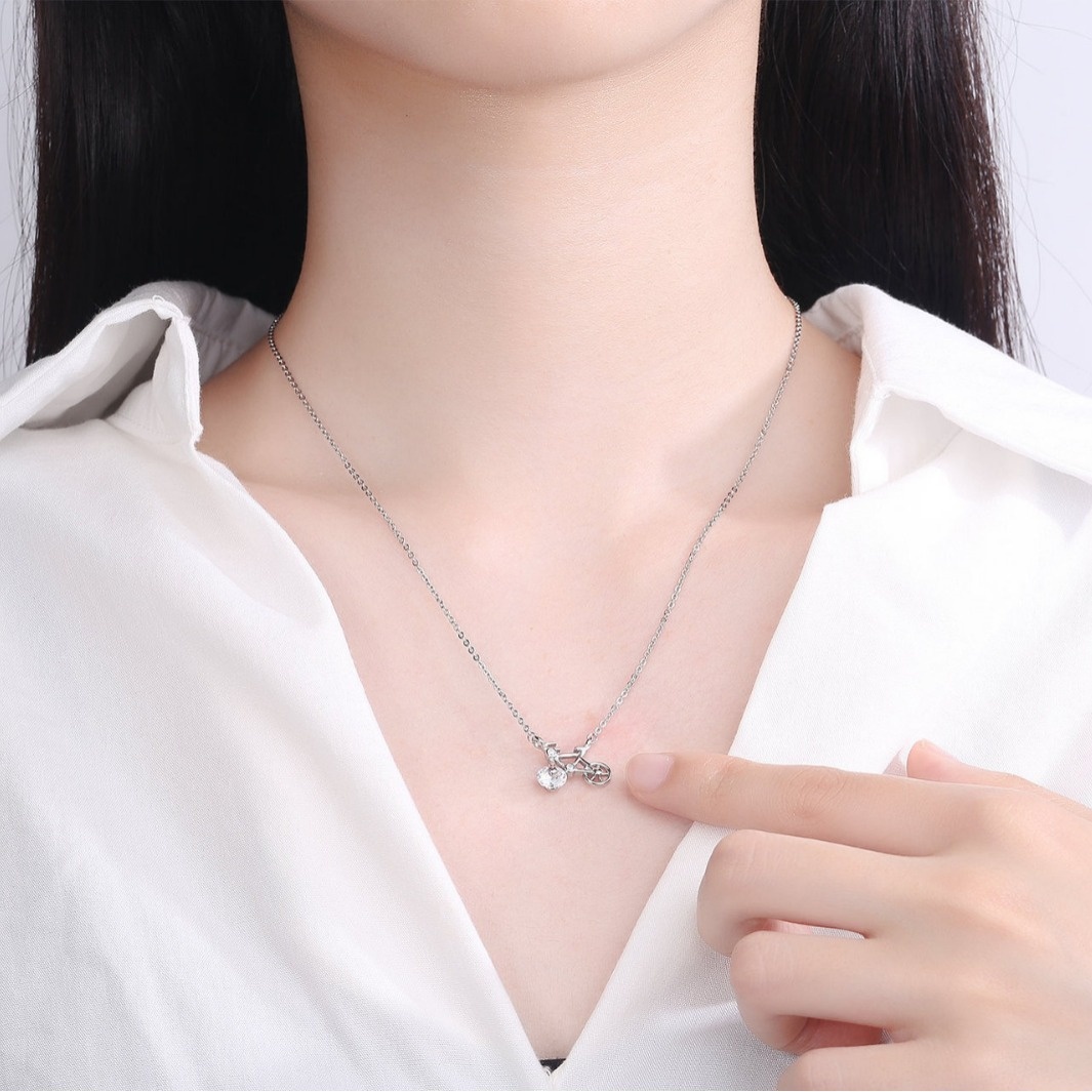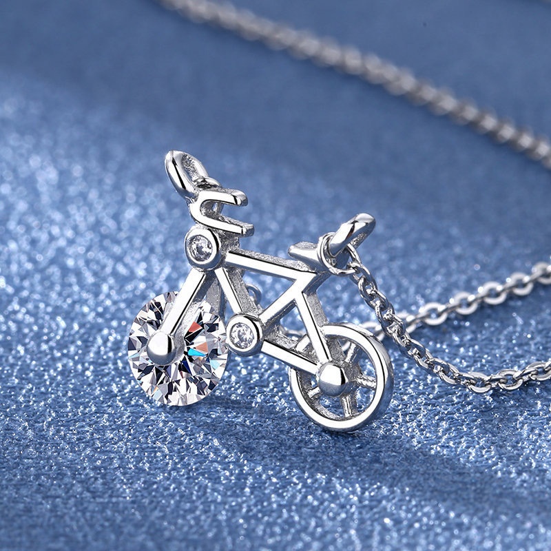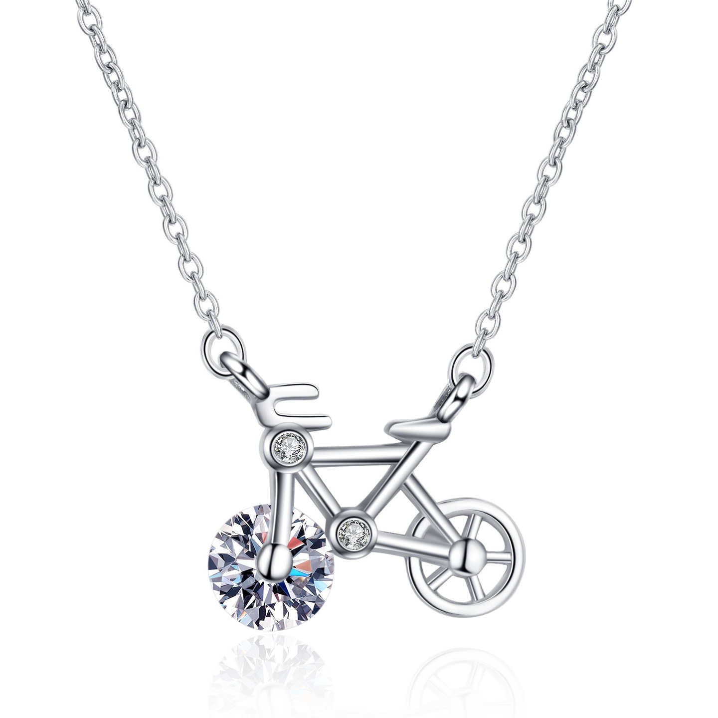 日韩新款时尚简约吊坠自行单车小众项链送女友礼物锆石锁骨链批发