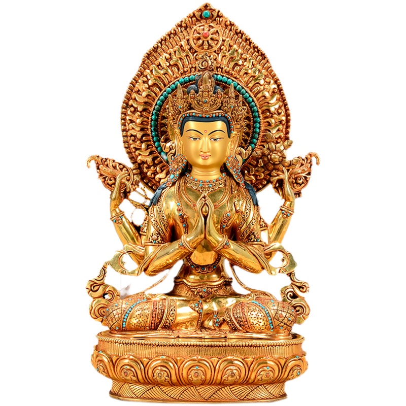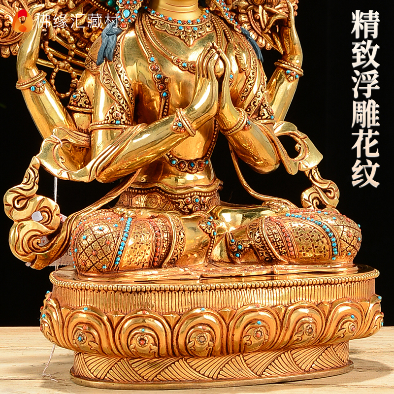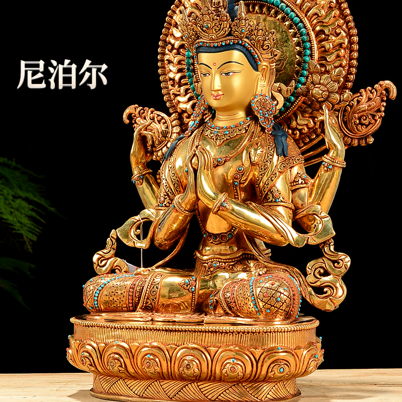 四臂观音铜像尼泊尔精工彩绘观音菩萨居家桌面摆件15寸