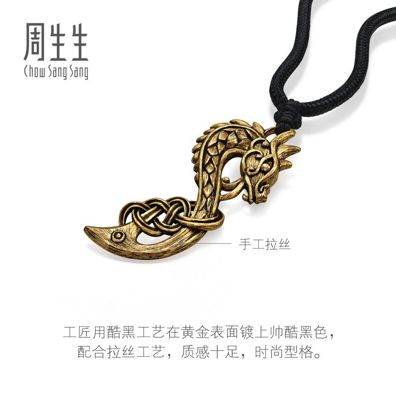 圣诞礼物周生生NOIR酷黑系列龙项链黄金足金吊坠颈链送男友91494Z