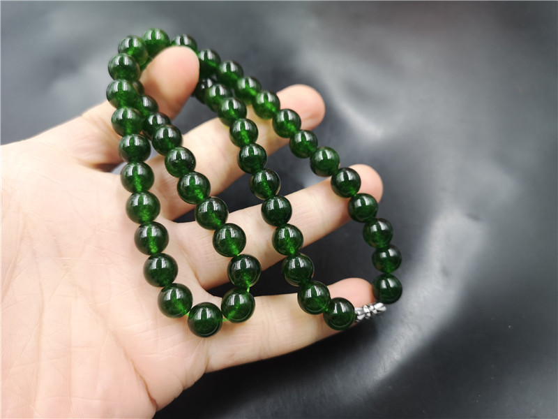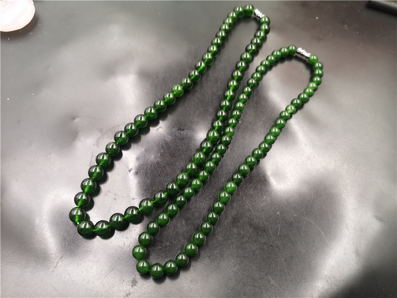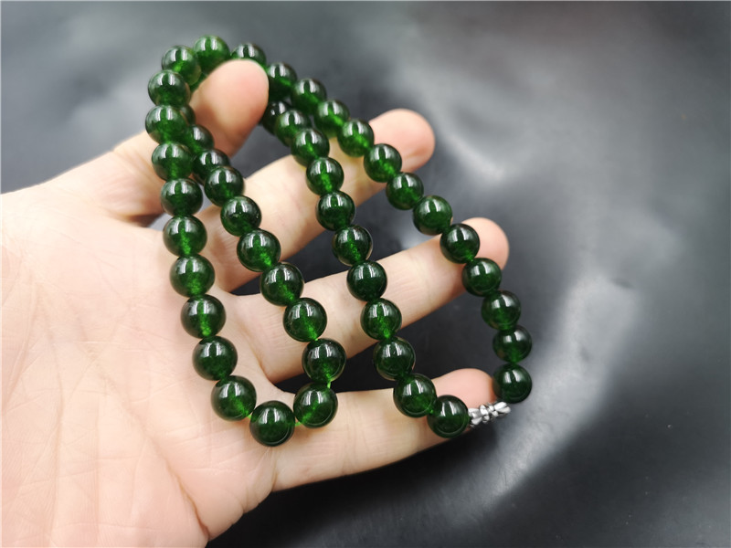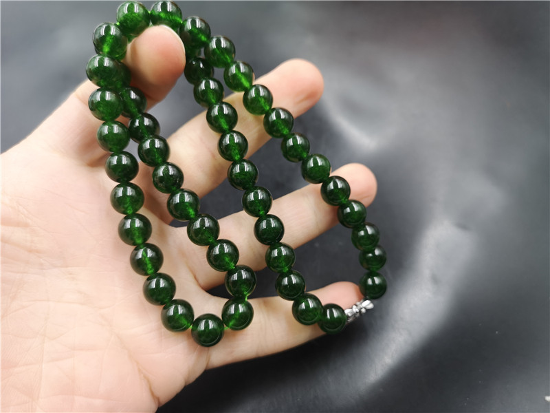四海玉器 女款深绿色碧玉项链 碧绿色玉石圆珠项链 锁骨链