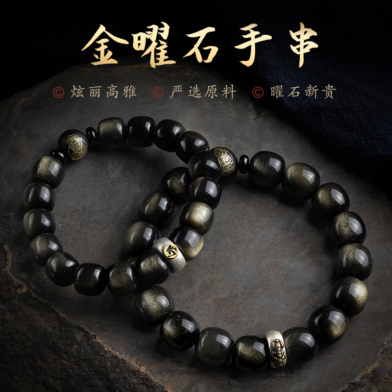 黑曜石手链男金曜石貔貅佛珠本命佛虚空藏菩萨貔貅情侣礼物手串女