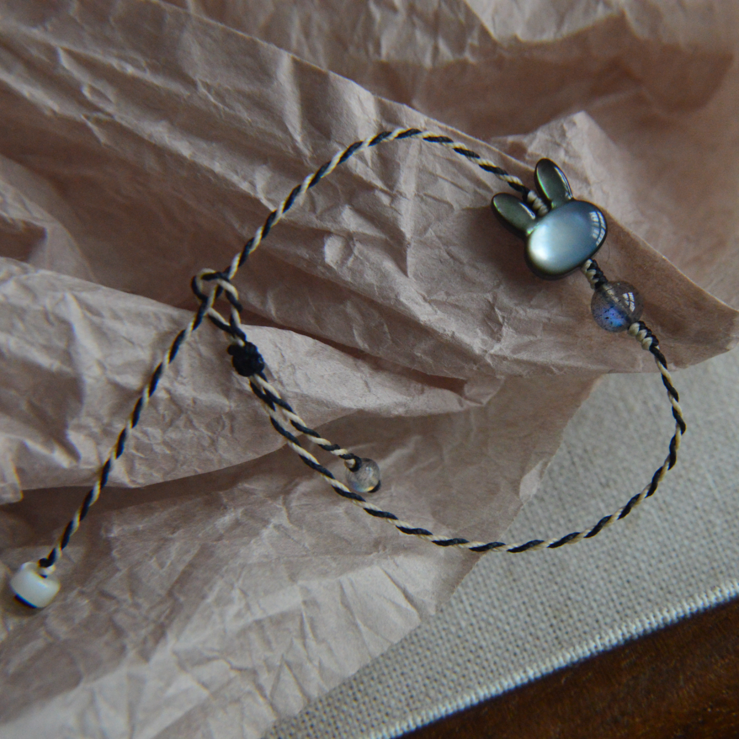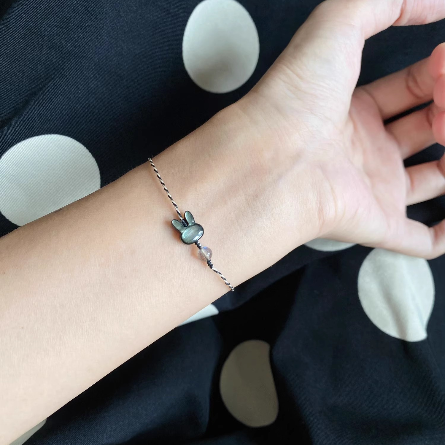 「月光小兔」小黑兔好萌呀 天然蝶贝兔子学生闺蜜编织手链手绳女