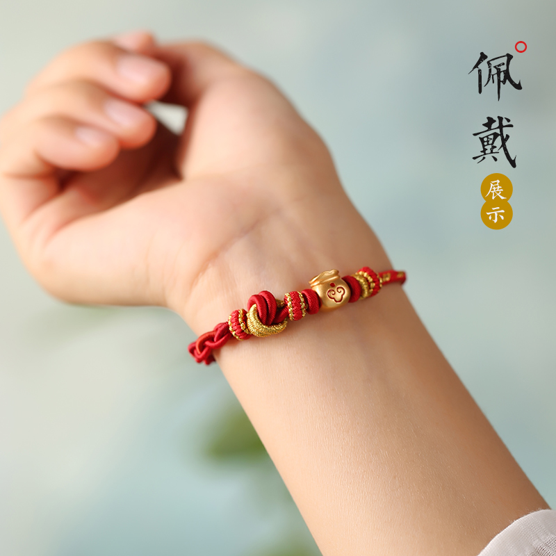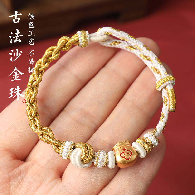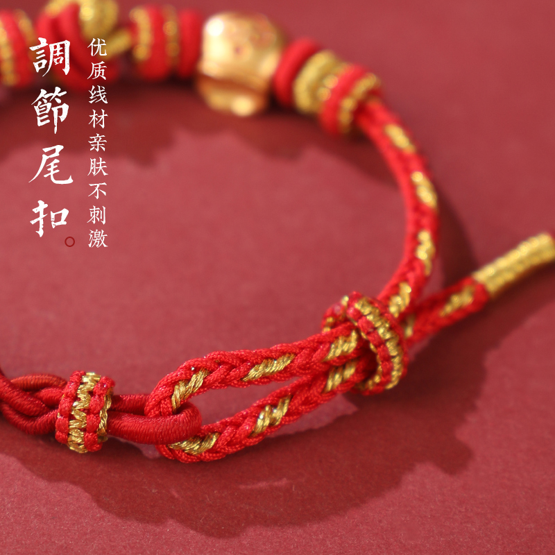 可穿珠手绳diy成品黄金配珠手工编织酒窝结手链男女小红绳本命年