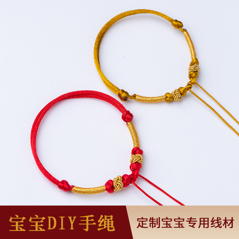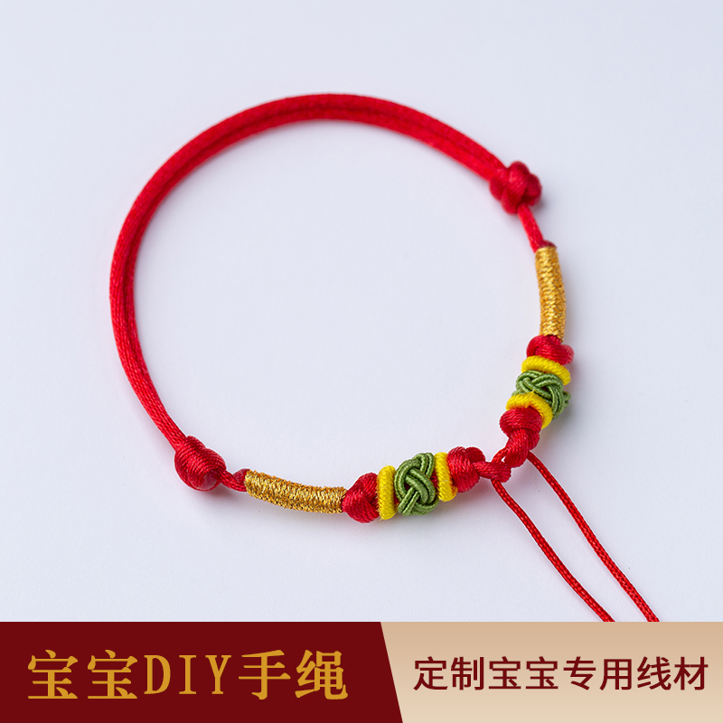 宝宝红绳可穿3D硬金珠不过敏百天满月周岁婴儿半成品手绳手工编织