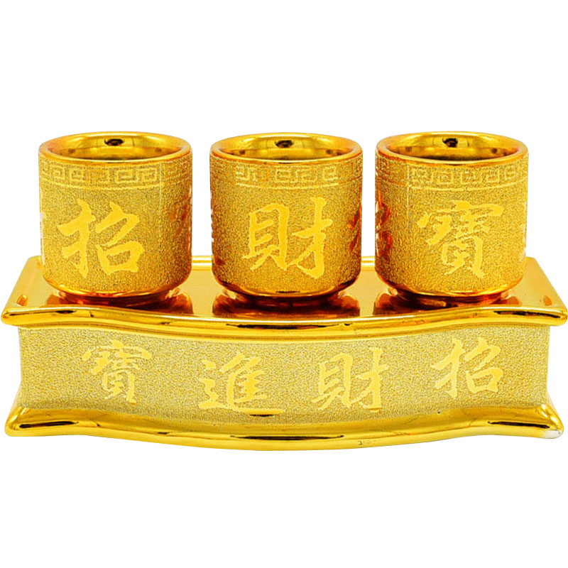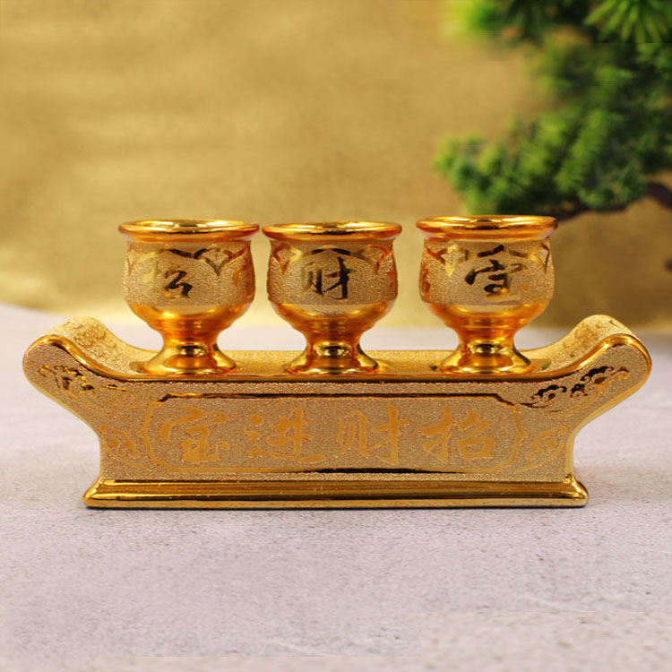金沙酒杯 财神供杯摆件 供水杯净水杯供佛杯陶瓷莲花供酒杯三供杯