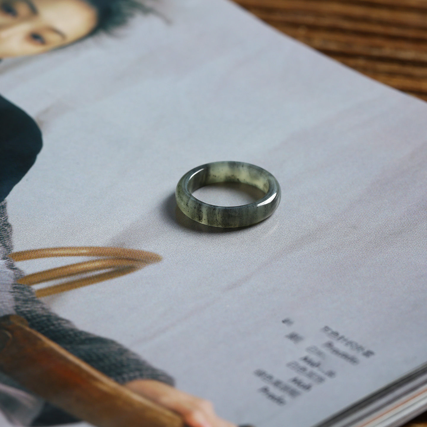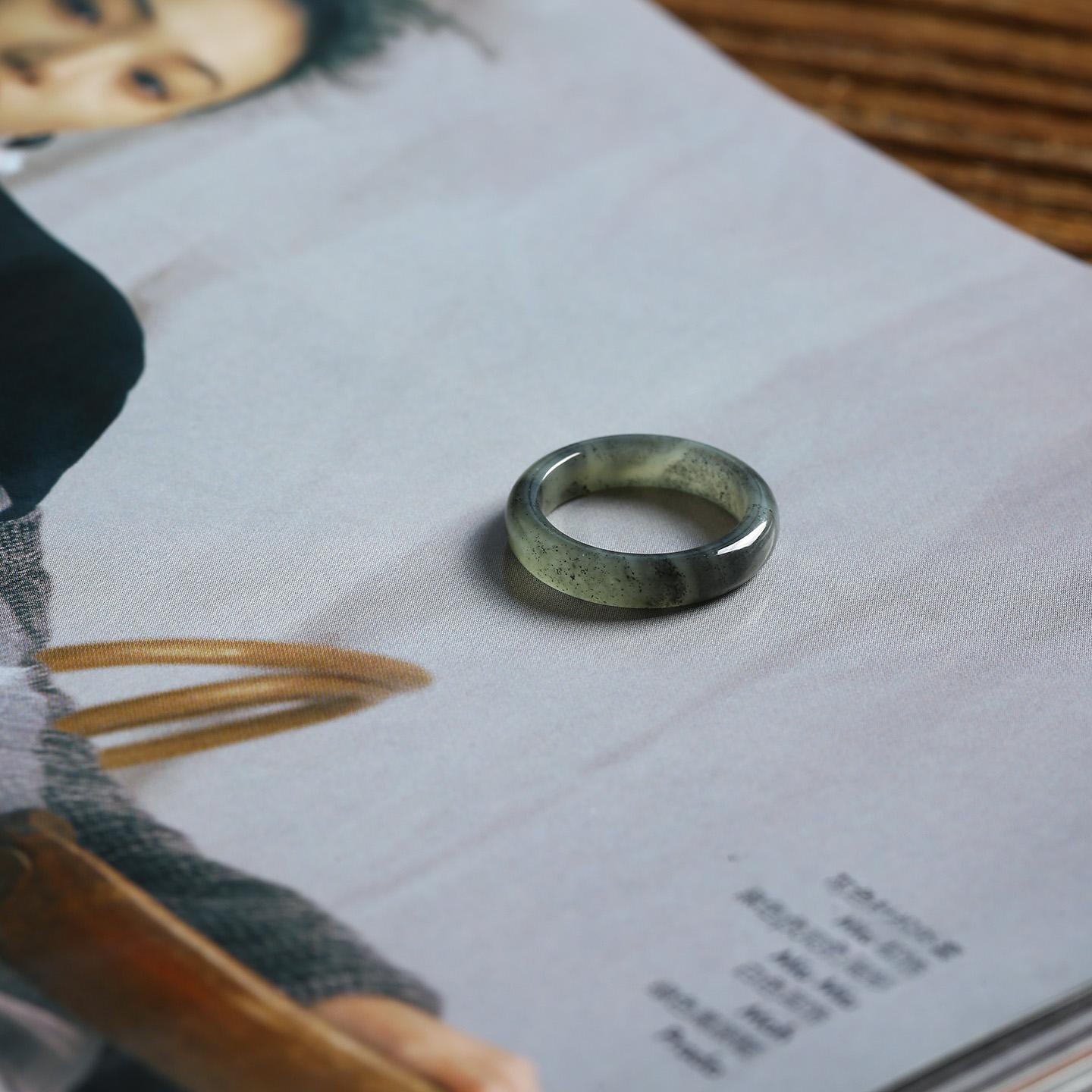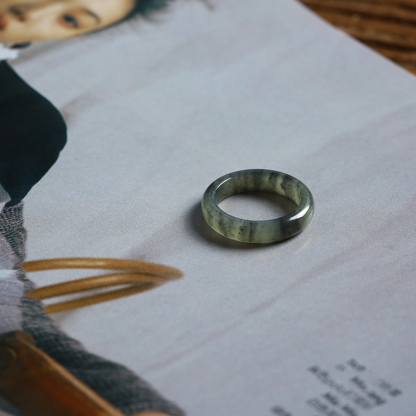 7号戒指 新疆和田玉青花窄条泥鳅背圆弧小尺码素圈指环 尾戒 6714