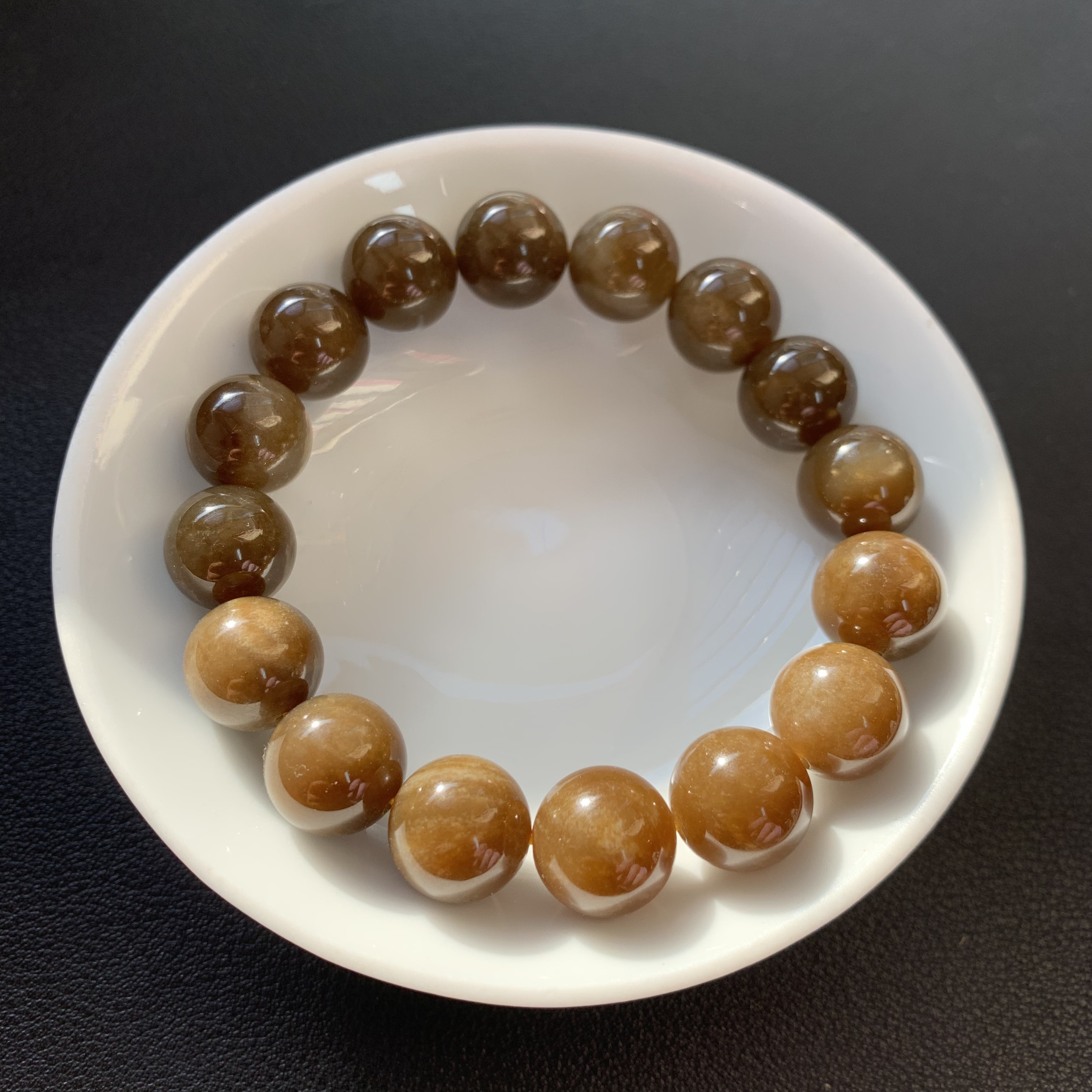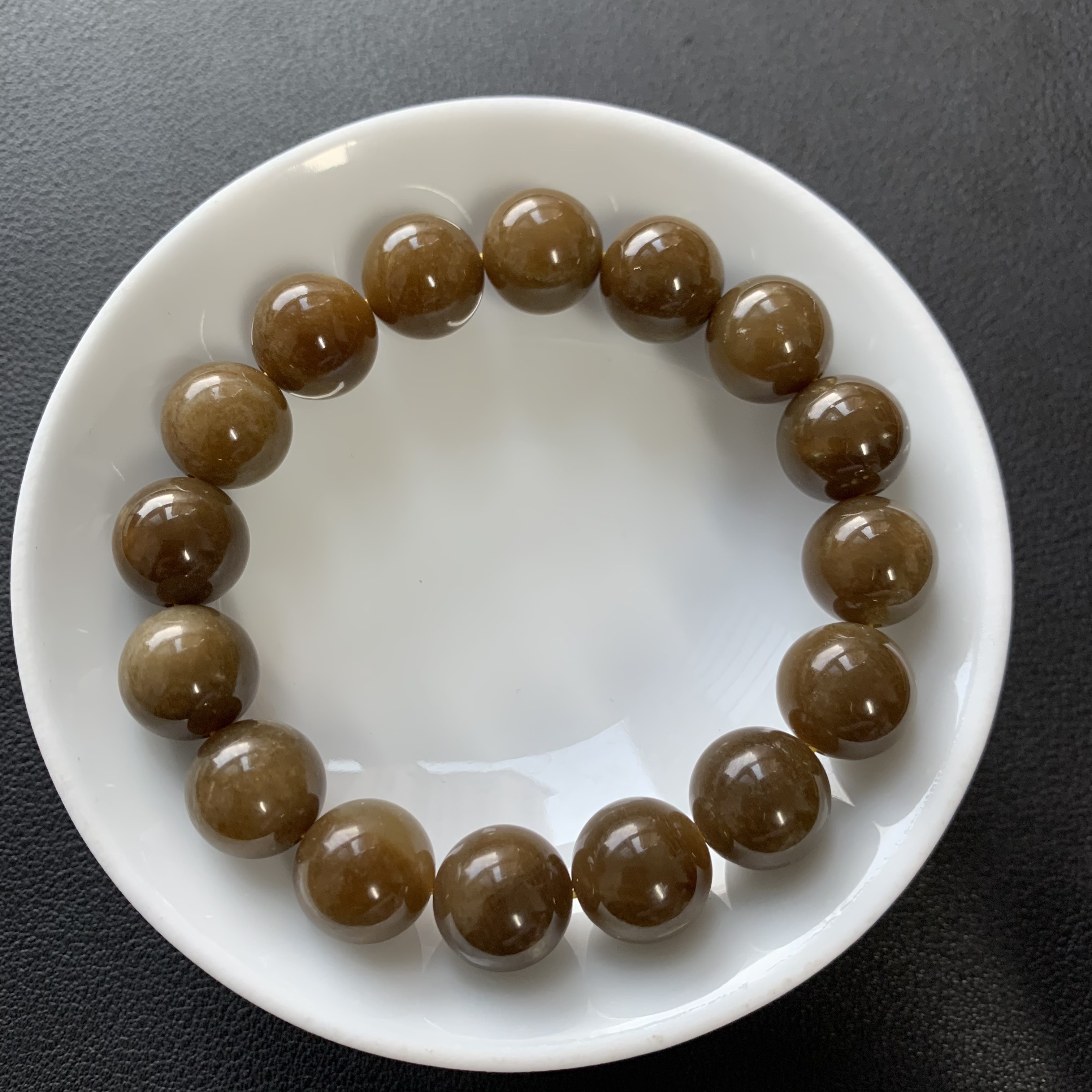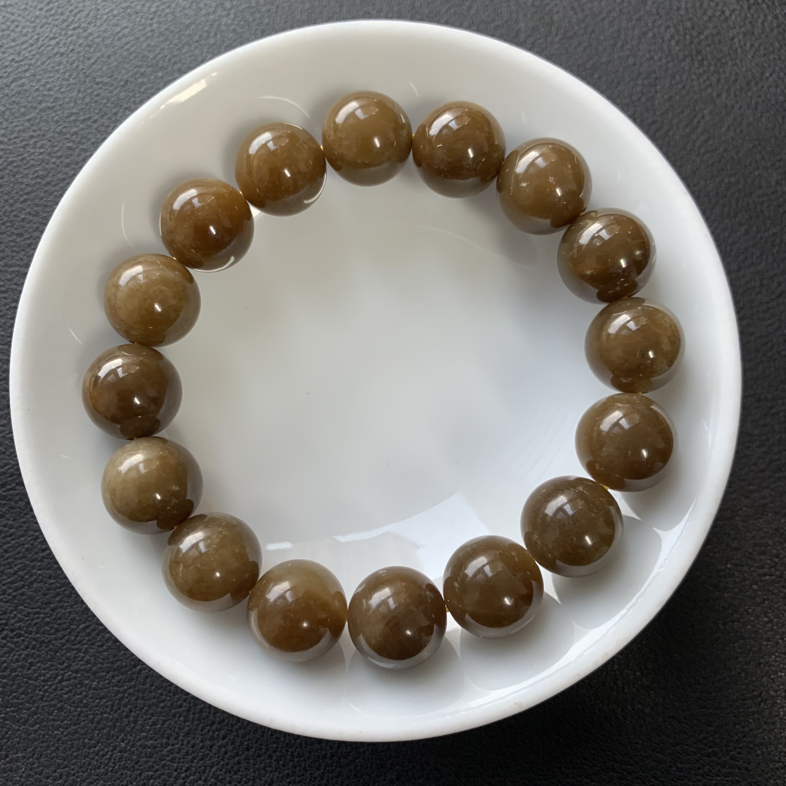 【新品】和田玉且末麻糖和田玉手串单珠约12mm