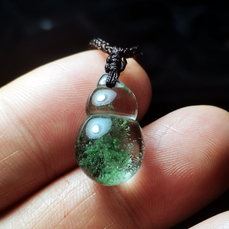 B天然水晶原石雕刻绿幽灵葫芦吊坠千层山聚宝盆金字塔异象男女