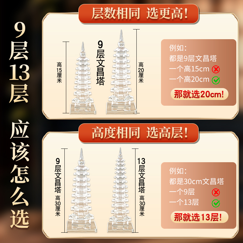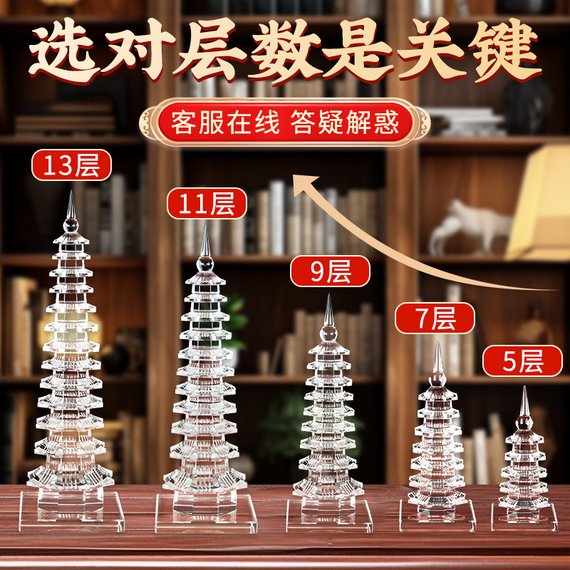 白水晶文昌塔摆件5层7层9层11层13层学生公务员文职书桌办公室