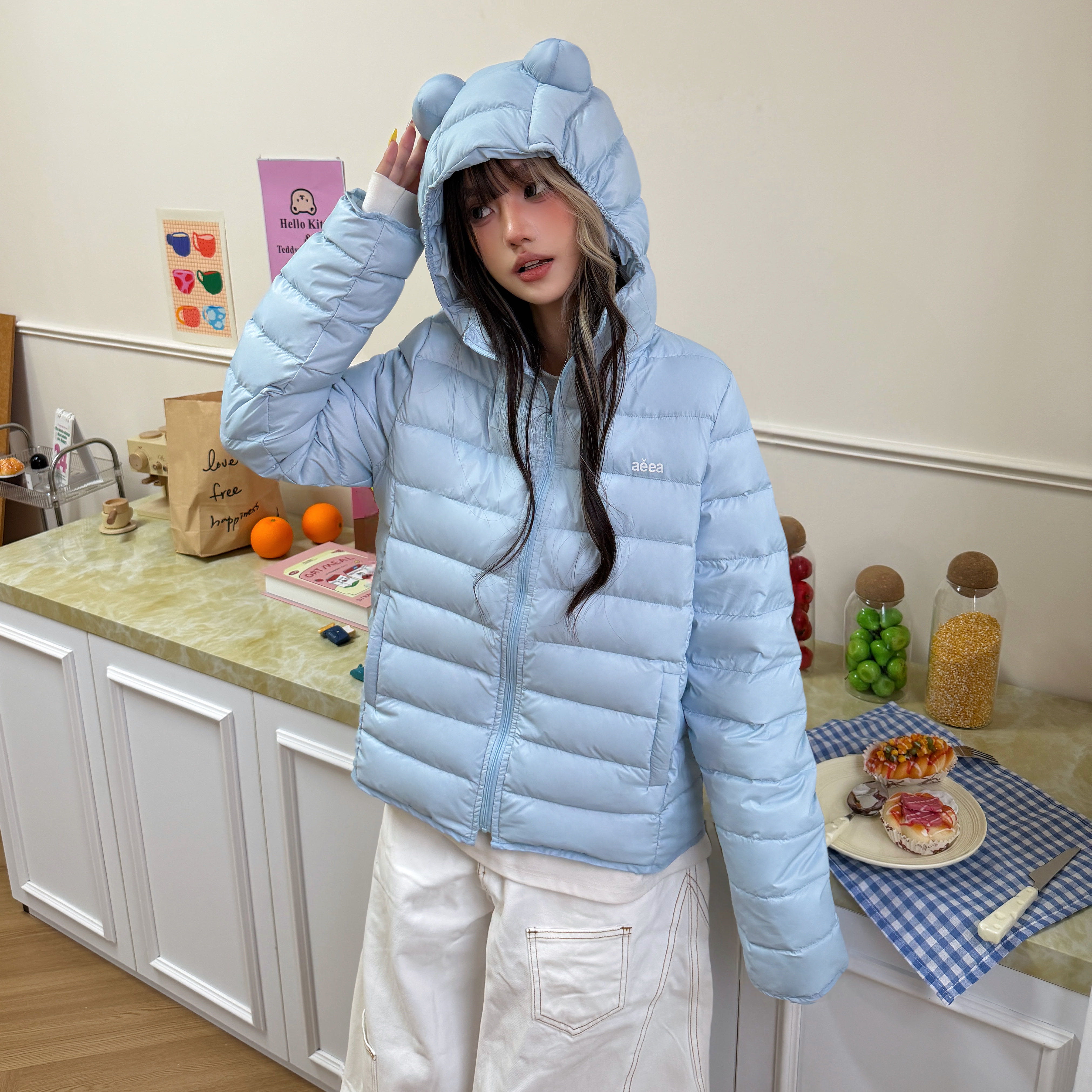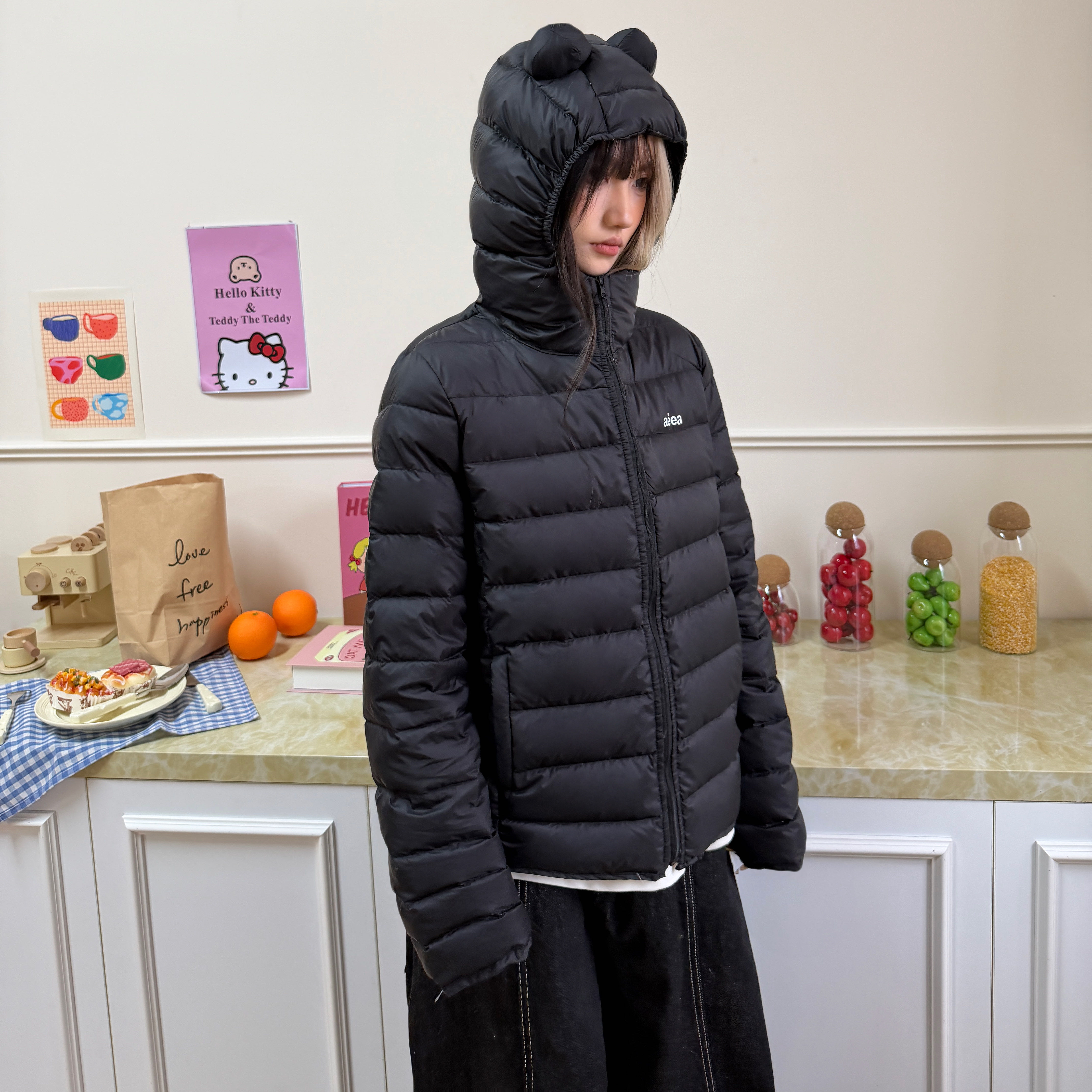 Amoeba甜酷小熊耳朵连帽排骨羽绒服90白鸭绒女冬季轻薄保暖外套