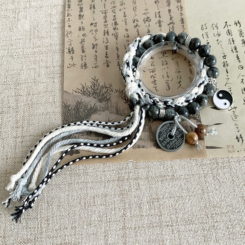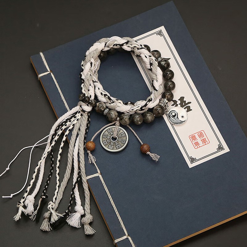 新款无极花钱双生太极山鬼手绳新中式男女复古款手串藏式编织礼物