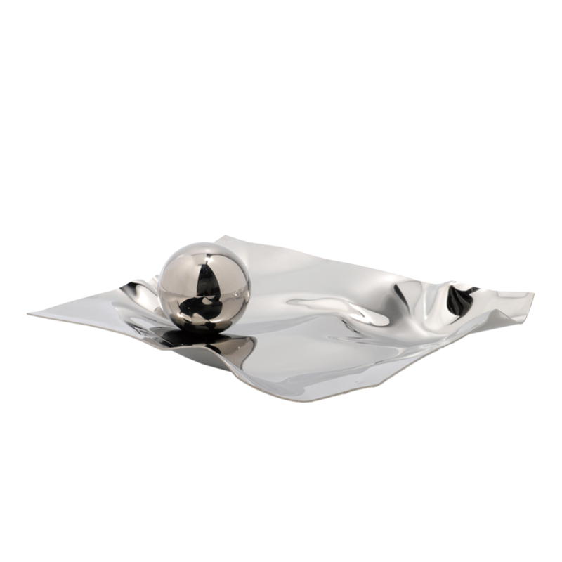 一匚样板间餐桌客厅茶几现代 轻奢银色艺术托盘软装饰品创意摆件