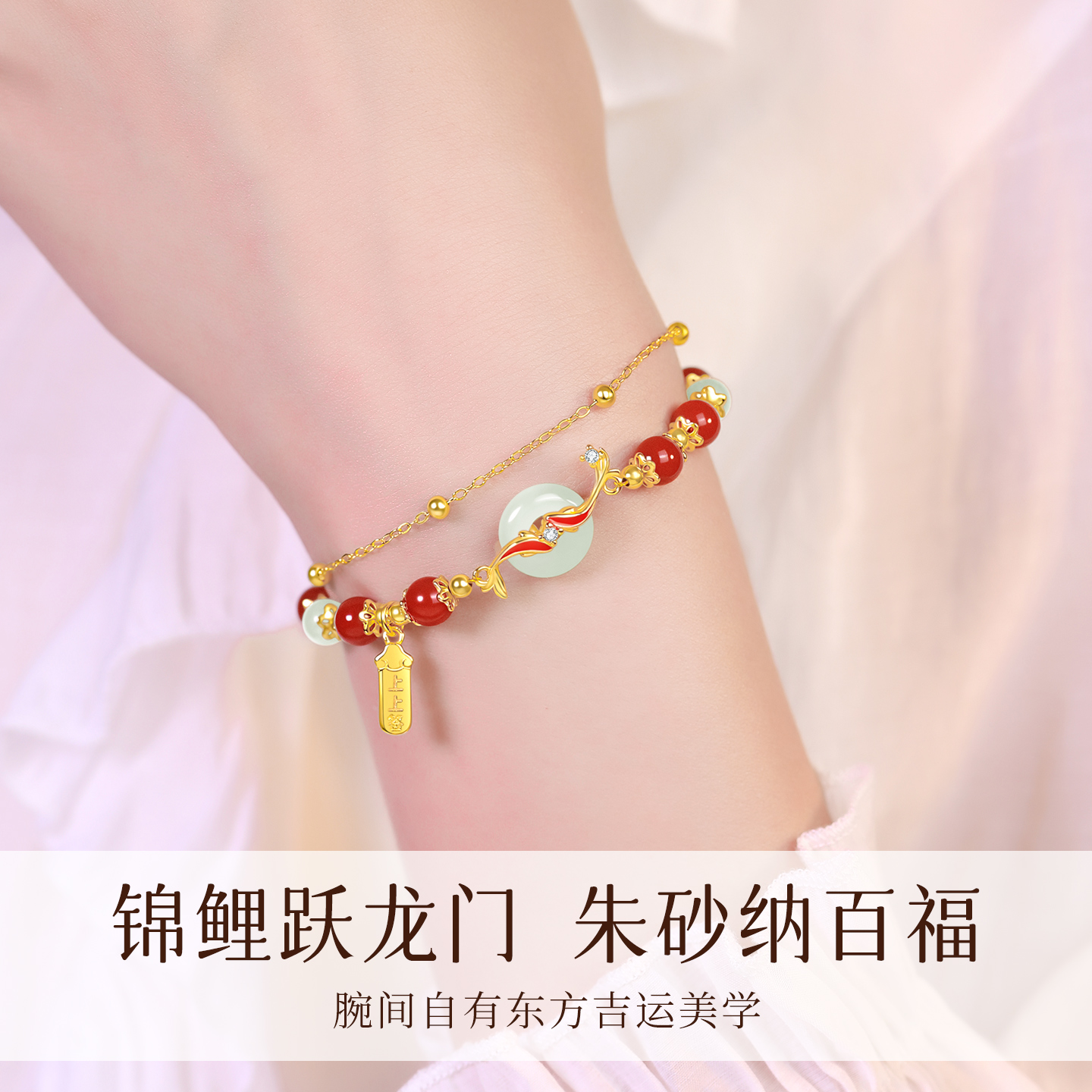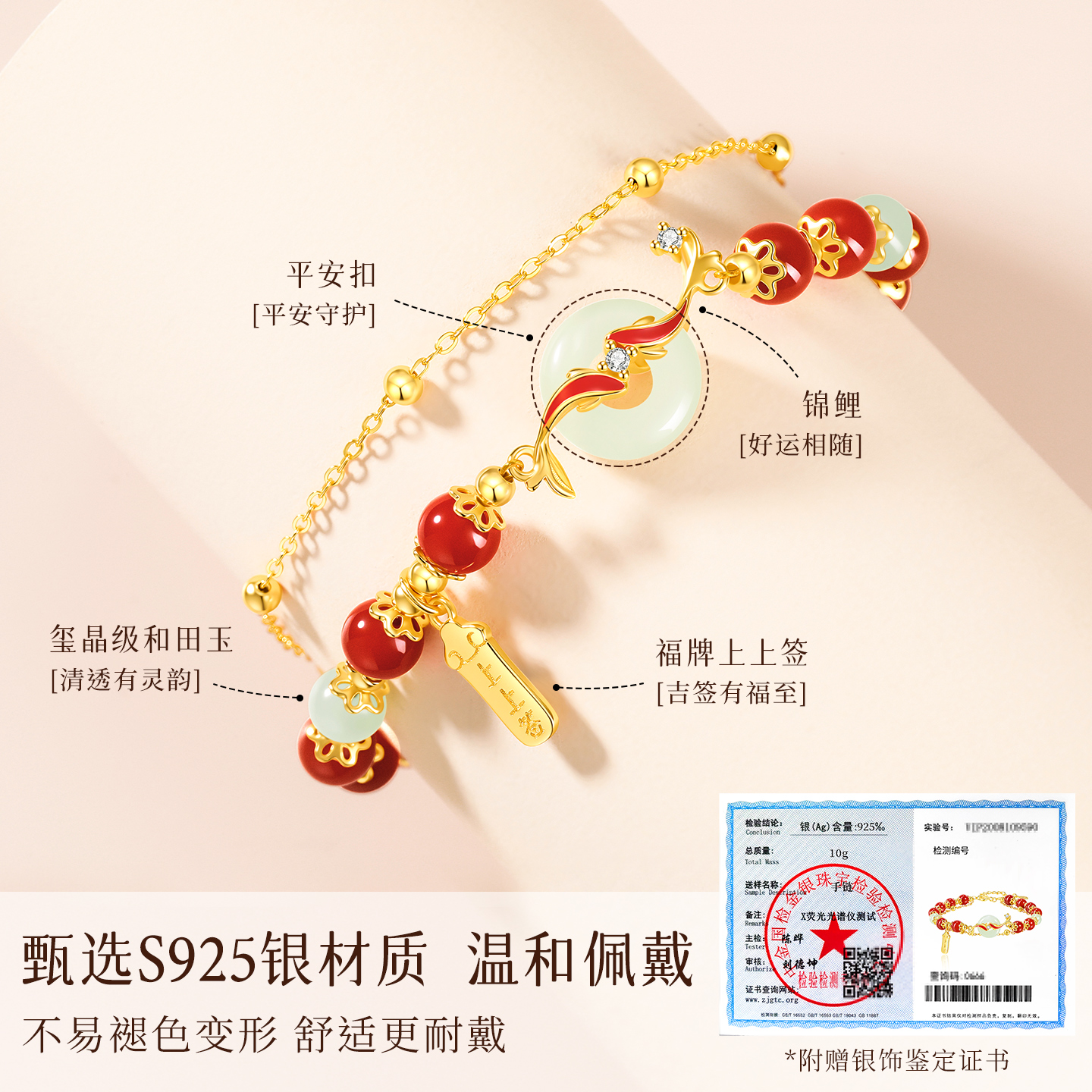 纯银好运锦鲤和田玉手链女款2025新款平安扣朱砂手串生日礼物女生