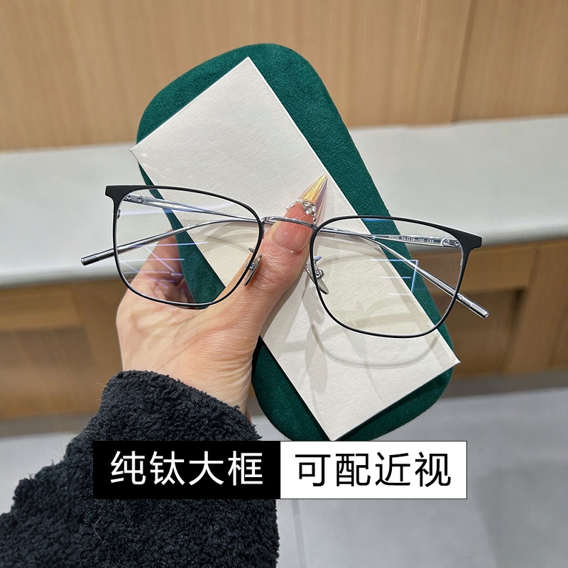 超轻纯钛变色近视眼镜男款潮可配度数商务大脸全框防蓝光眼睛防雾