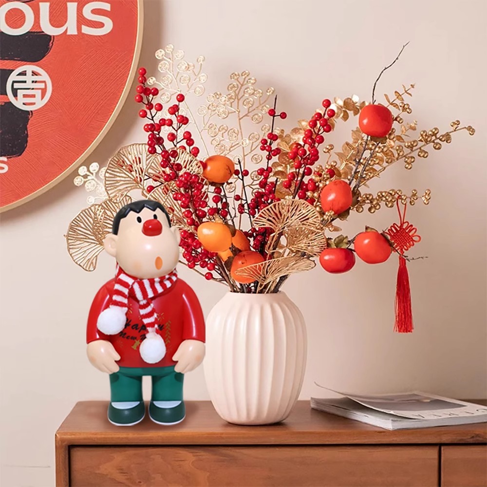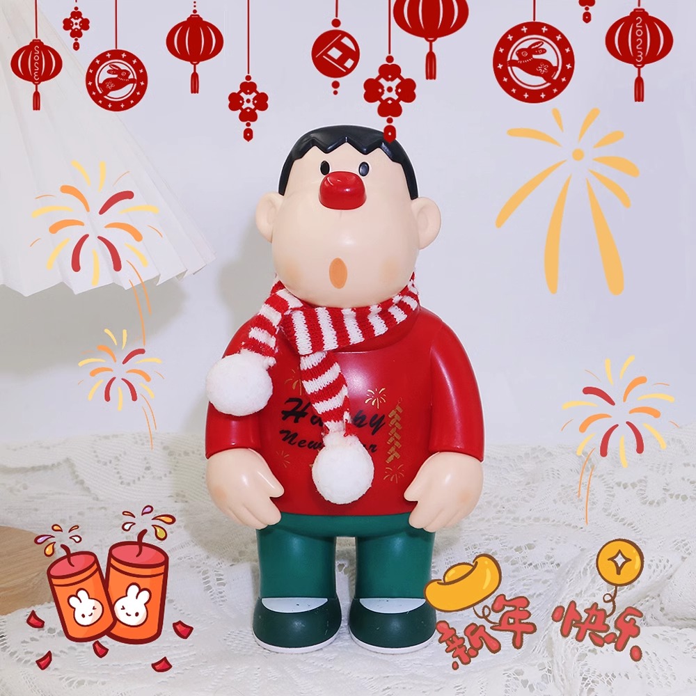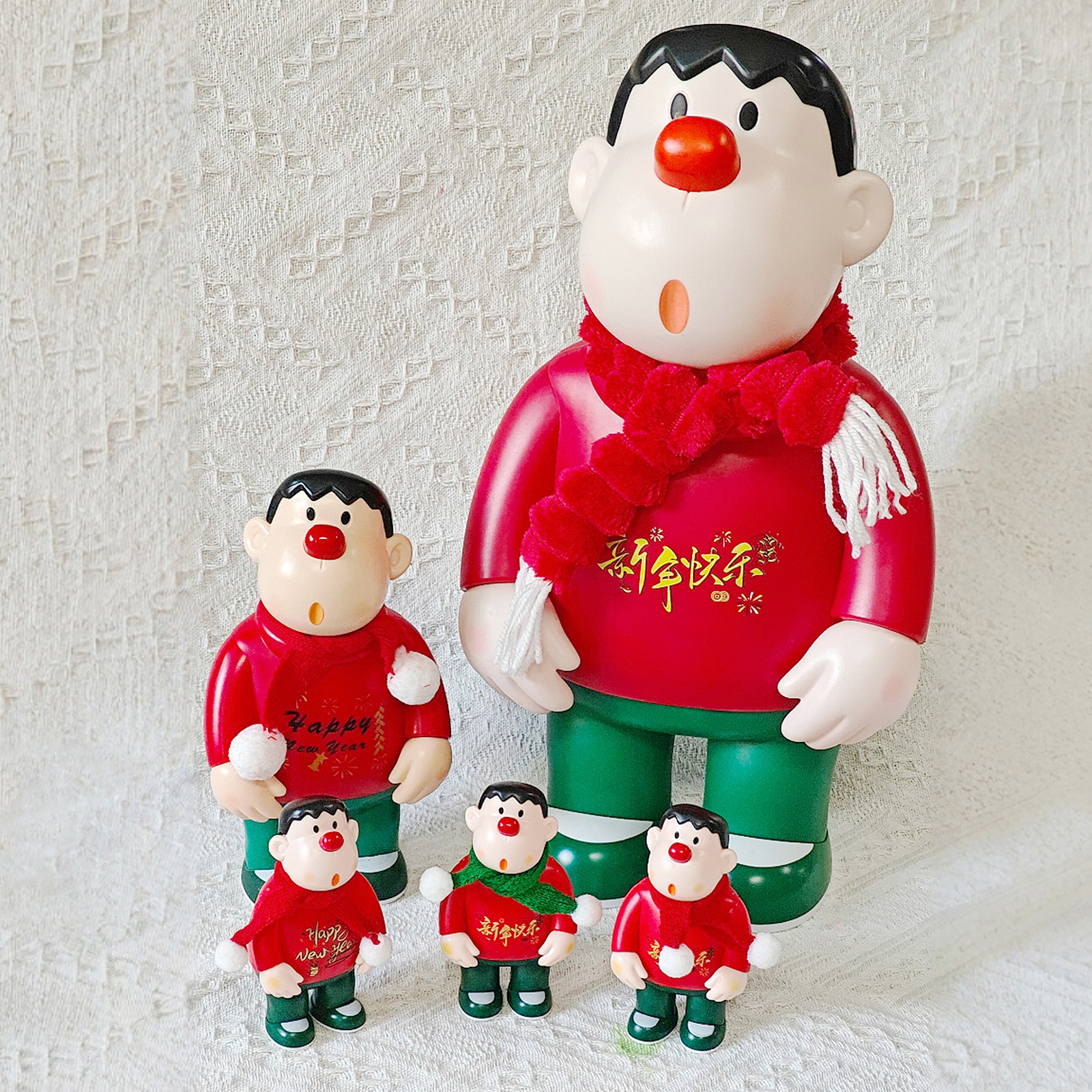 胖虎歪头摆件新年喜庆款桌面客厅玄关汽车中控装饰呆萌家居公仔