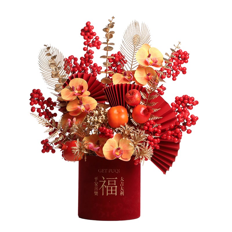乔迁之喜发财果福桶摆件装饰x红果抱抱桶年宵花新年布置品搬家礼