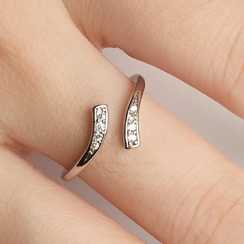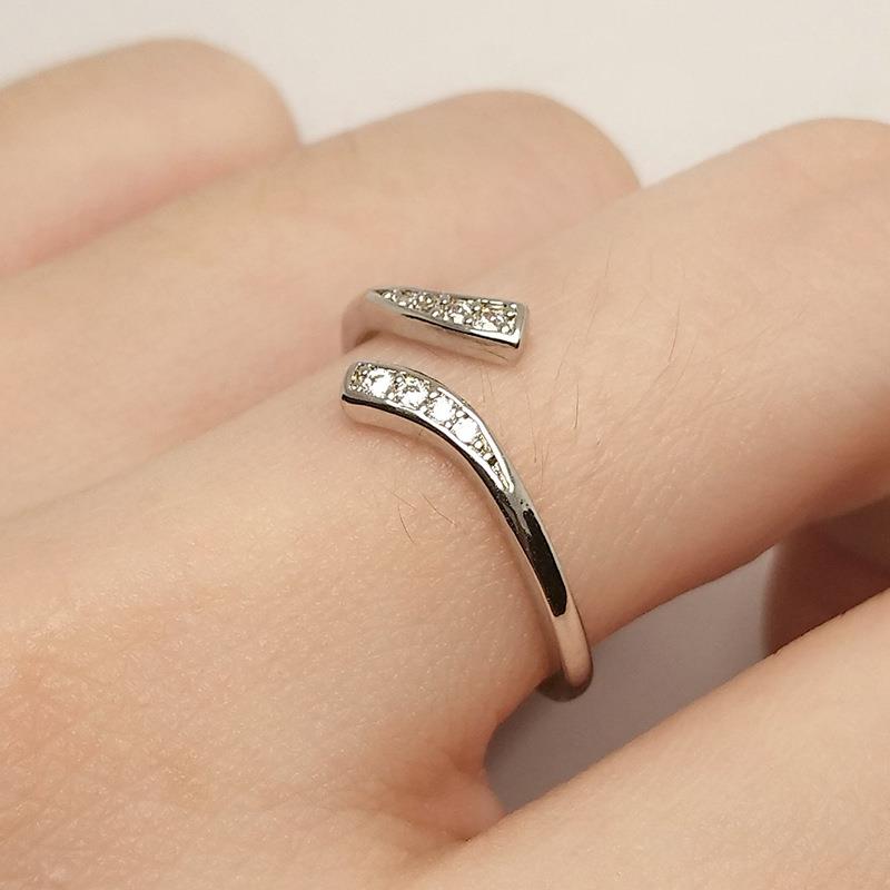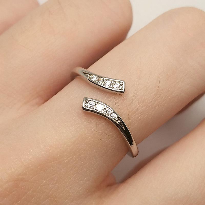 亚马逊跨境简约彩带镀银戒指时尚复古排钻锆石开口可调节指环