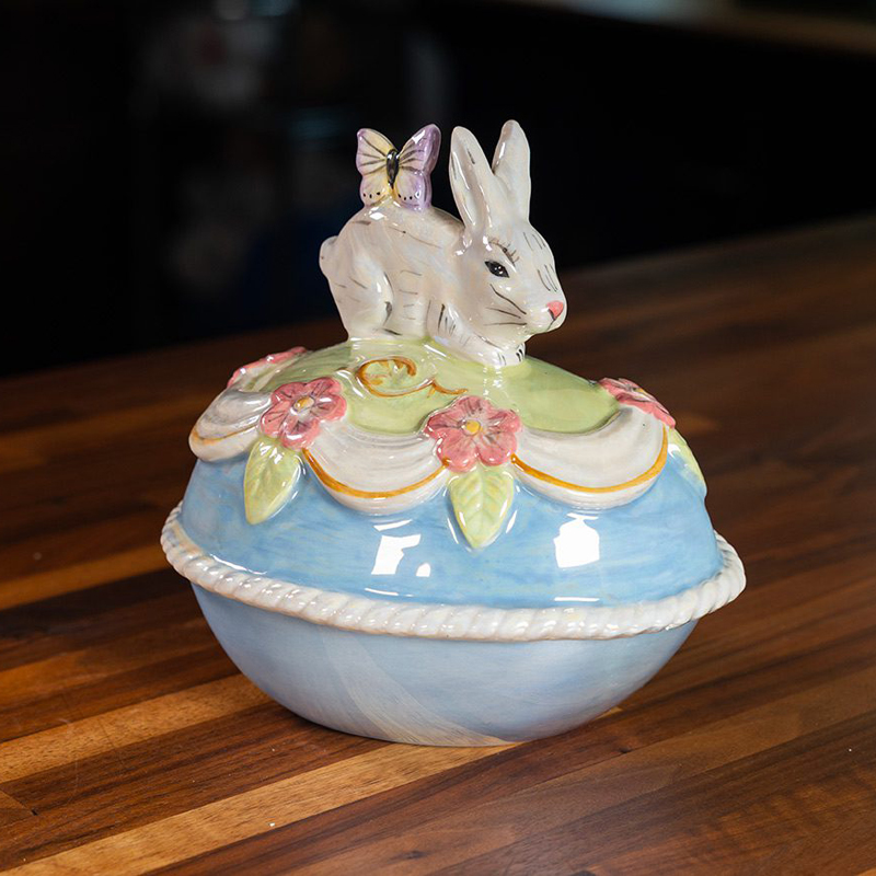 布鲁瓷陶瓷收纳盒陶瓷珍珠釉兔子首饰盒欧式家用收纳盒珍珠首饰盒