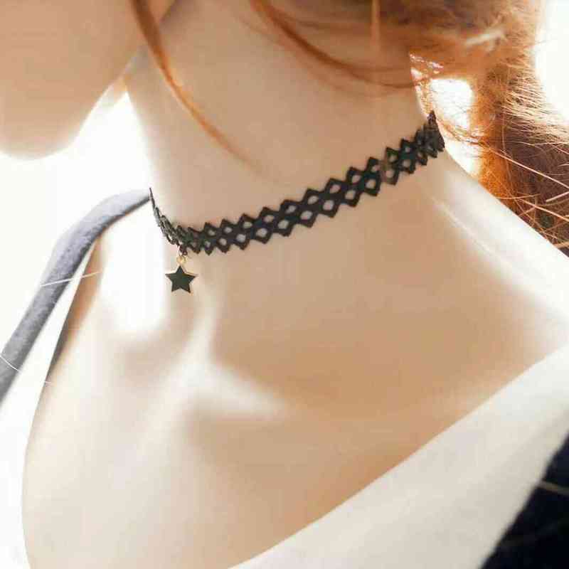 原宿项圈女黑色蕾丝简约森系百搭学生韩国短款锁骨链颈带脖子饰品