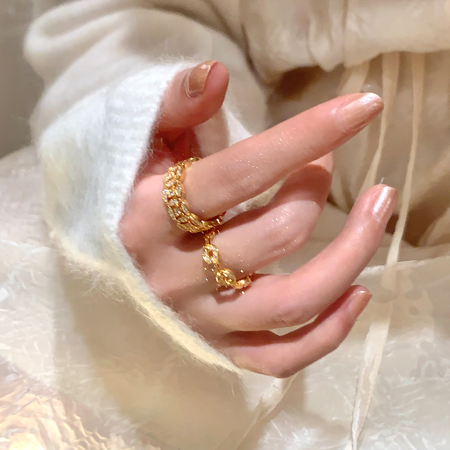 金色闪锆五帝钱戒指女轻奢高级感食指戒小众设计开口戒指环配饰