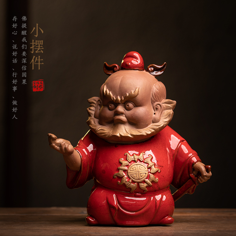 新中式紫砂钟馗陶l瓷摆件天师纳福桌面玄关博古架家居饰品长辈送