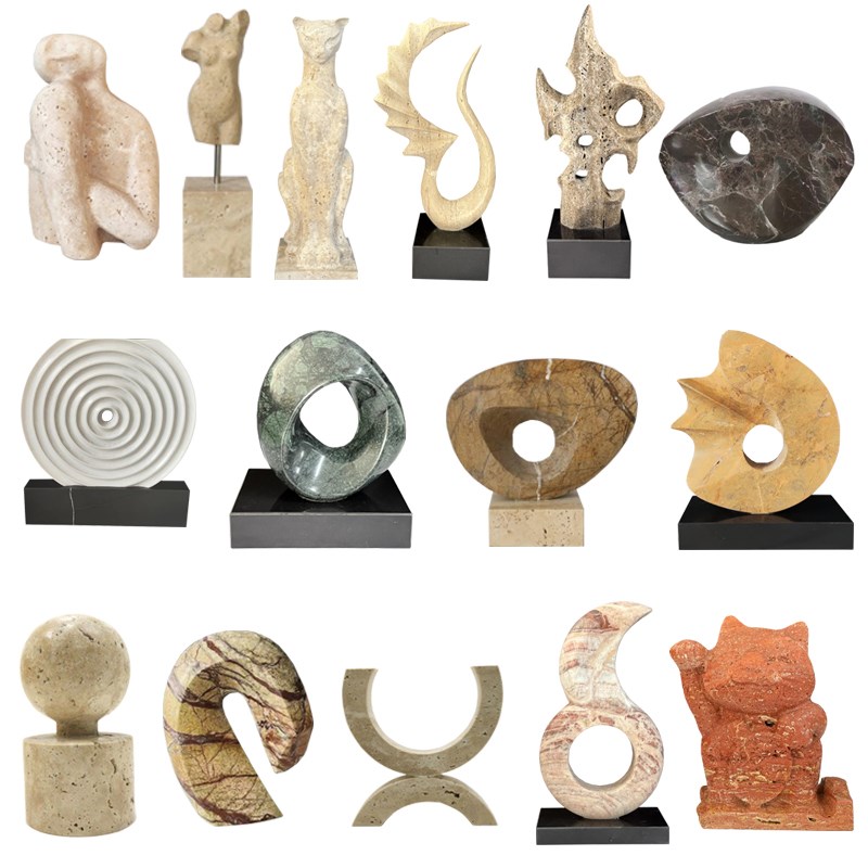 现代简约天然大理石黄洞石人体动物几何抽象雕塑摆件样板间装饰品