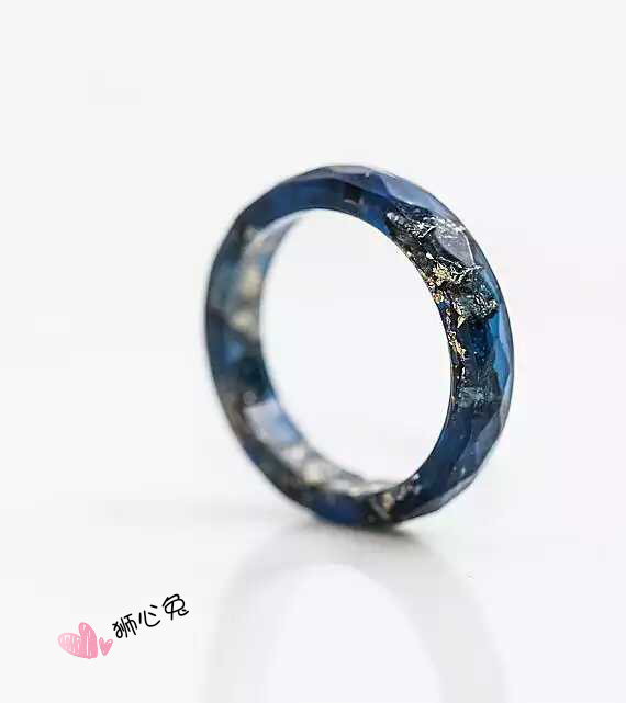 狮心兔 手工制作Elena同款欧美深海蓝金箔树脂 银箔 大码情侣戒指