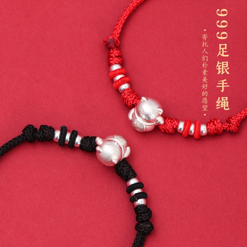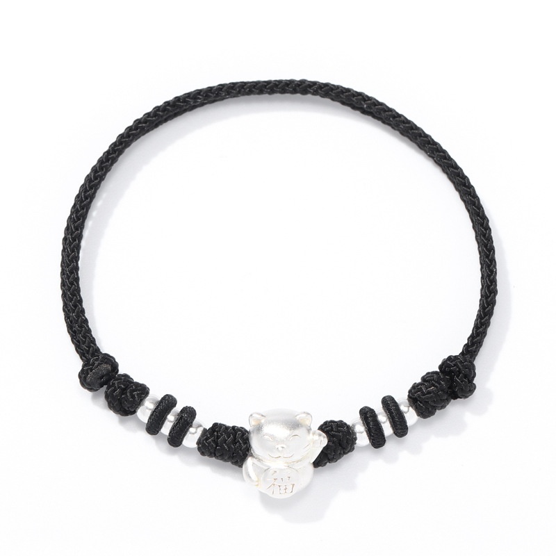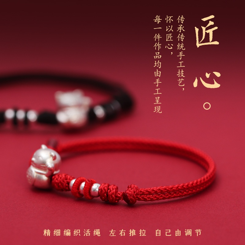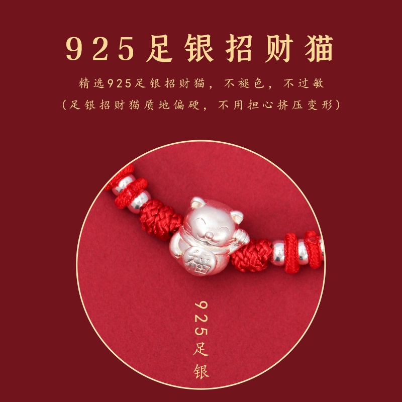 【招财猫】S999银招财猫纯手工编织红绳手链手绳情侣款七夕节礼物