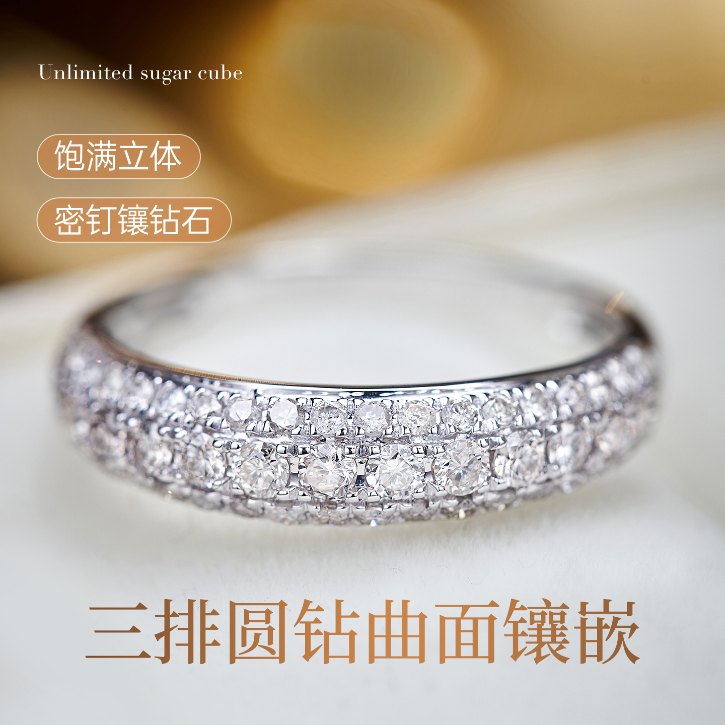 喜钻 胖排钻石排戒白18K金钻戒天然真钻镶排镶碎钻钻戒女正品钻戒
