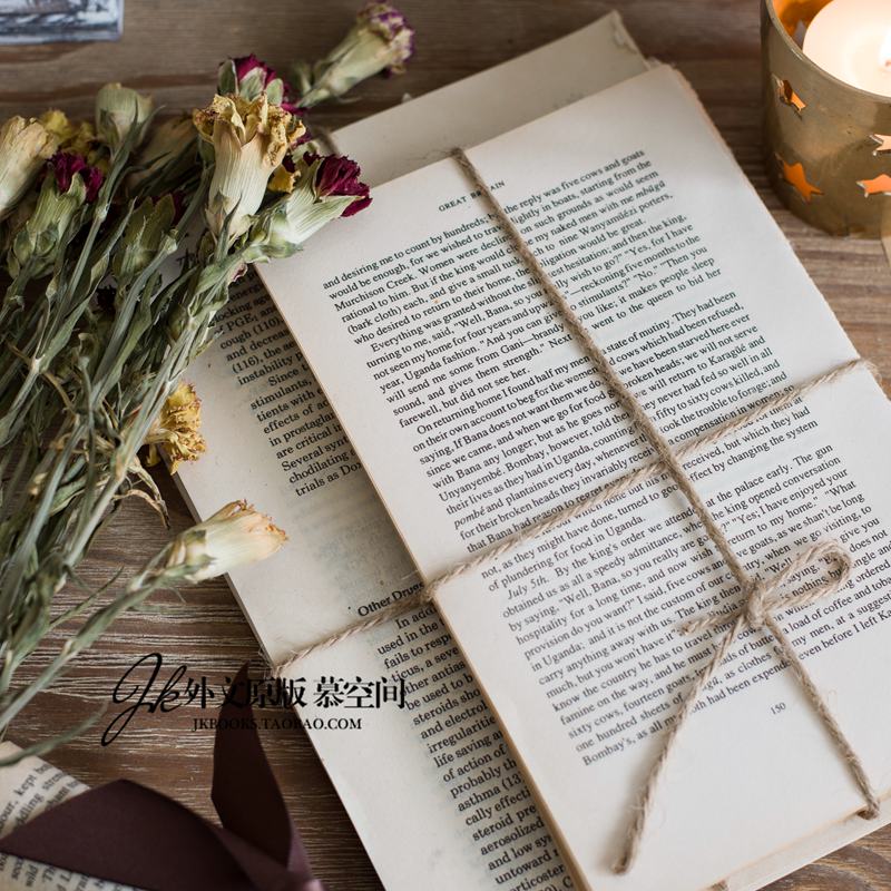 JK慕空间 复古文艺外文英文麻绳捆绑书落书捆书房摆件拍摄道具