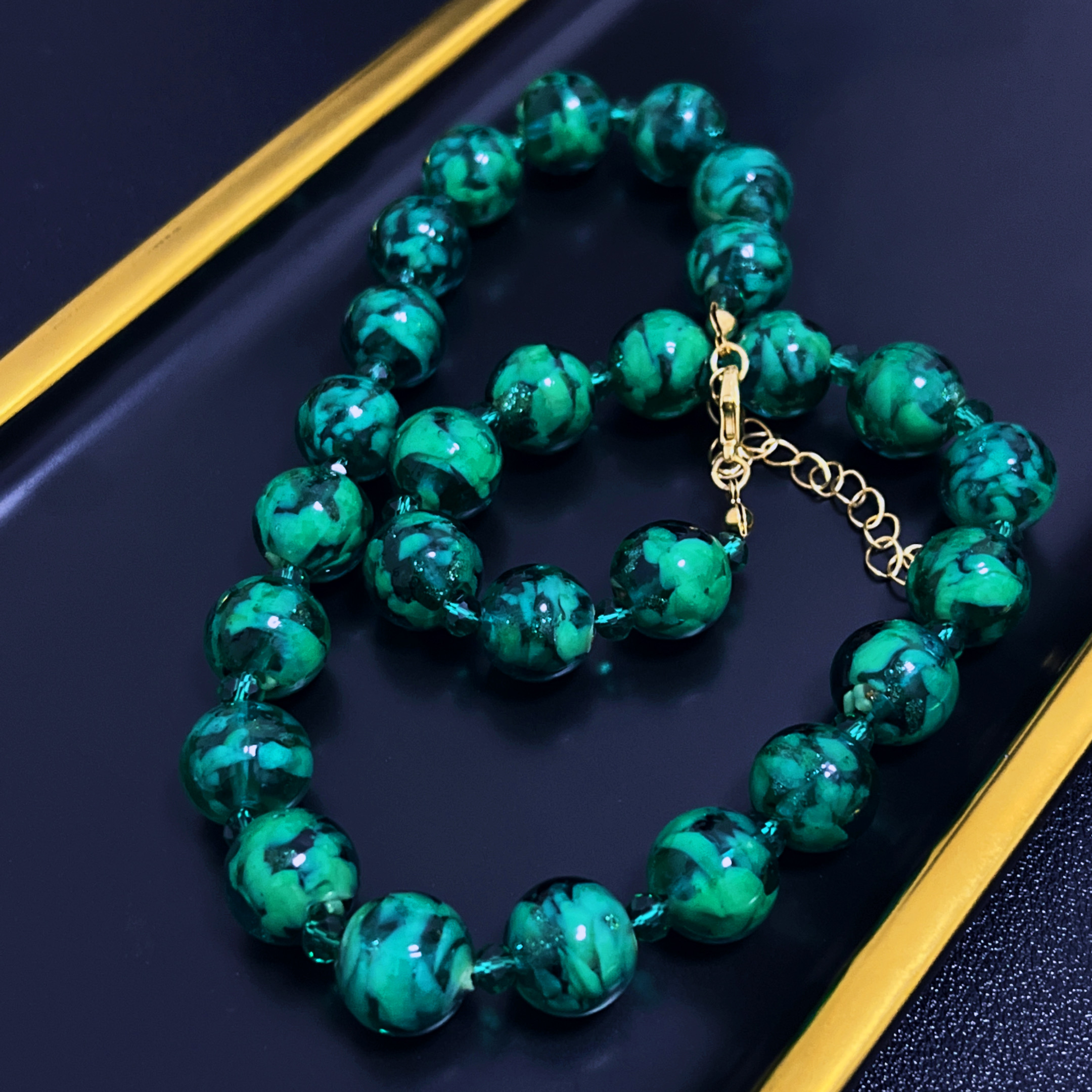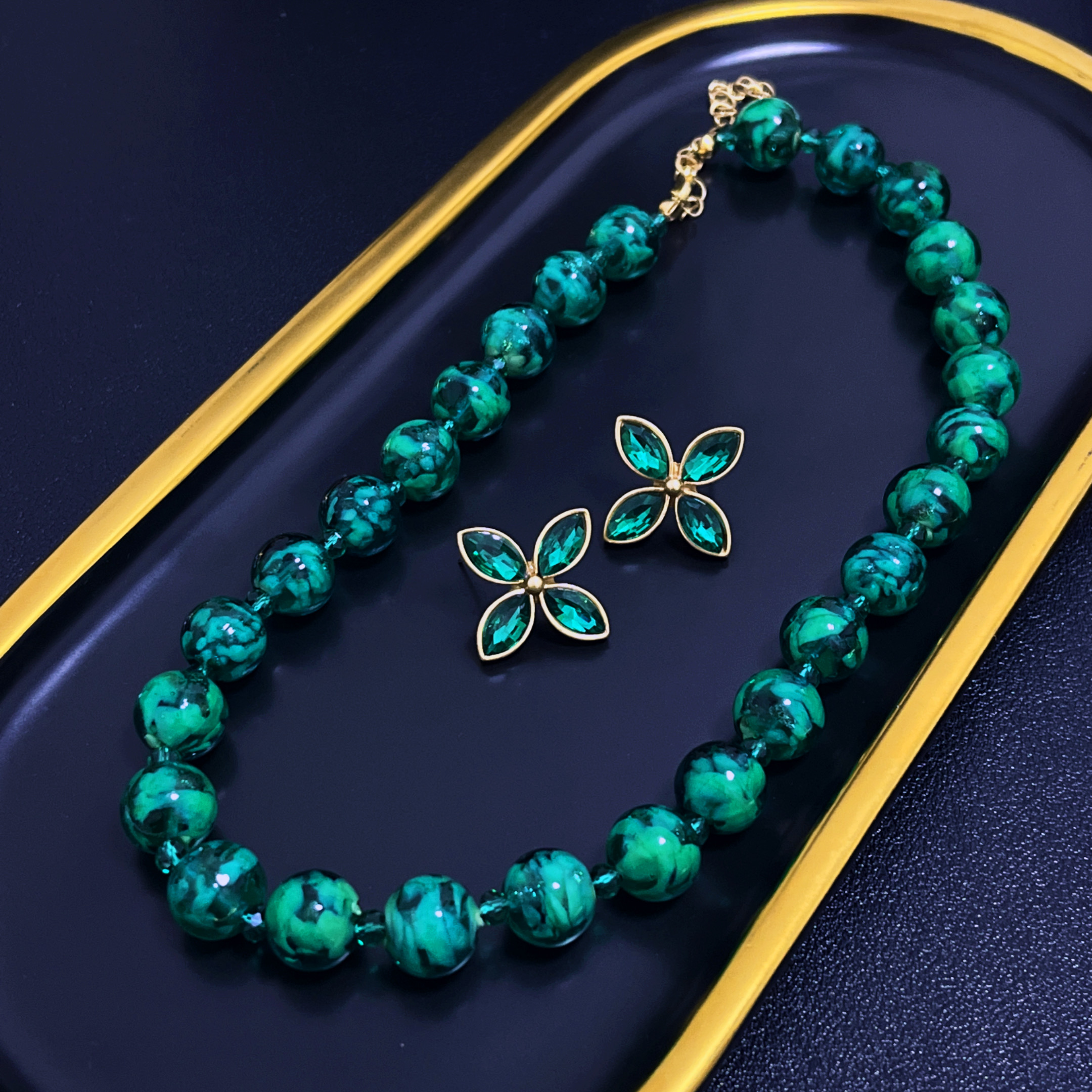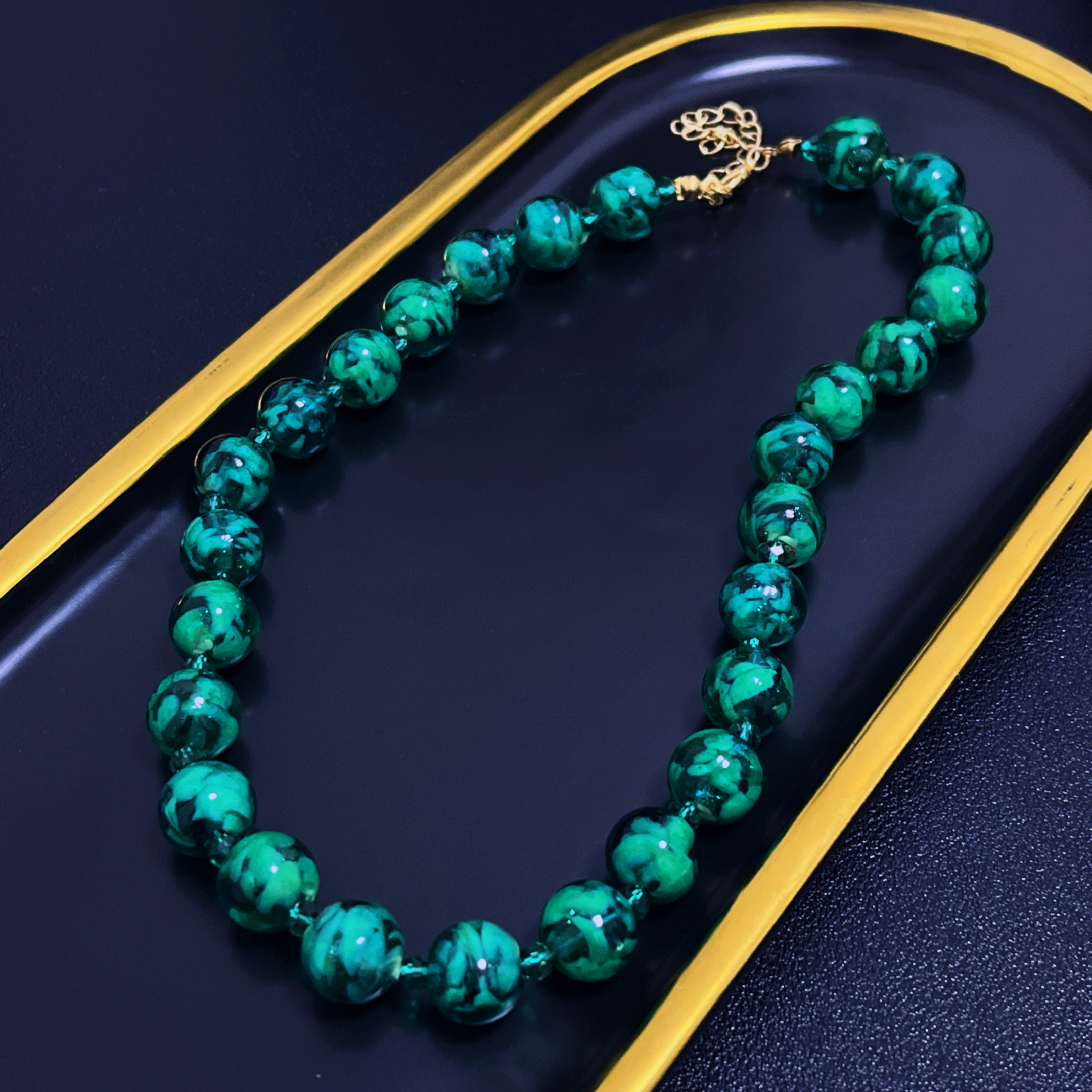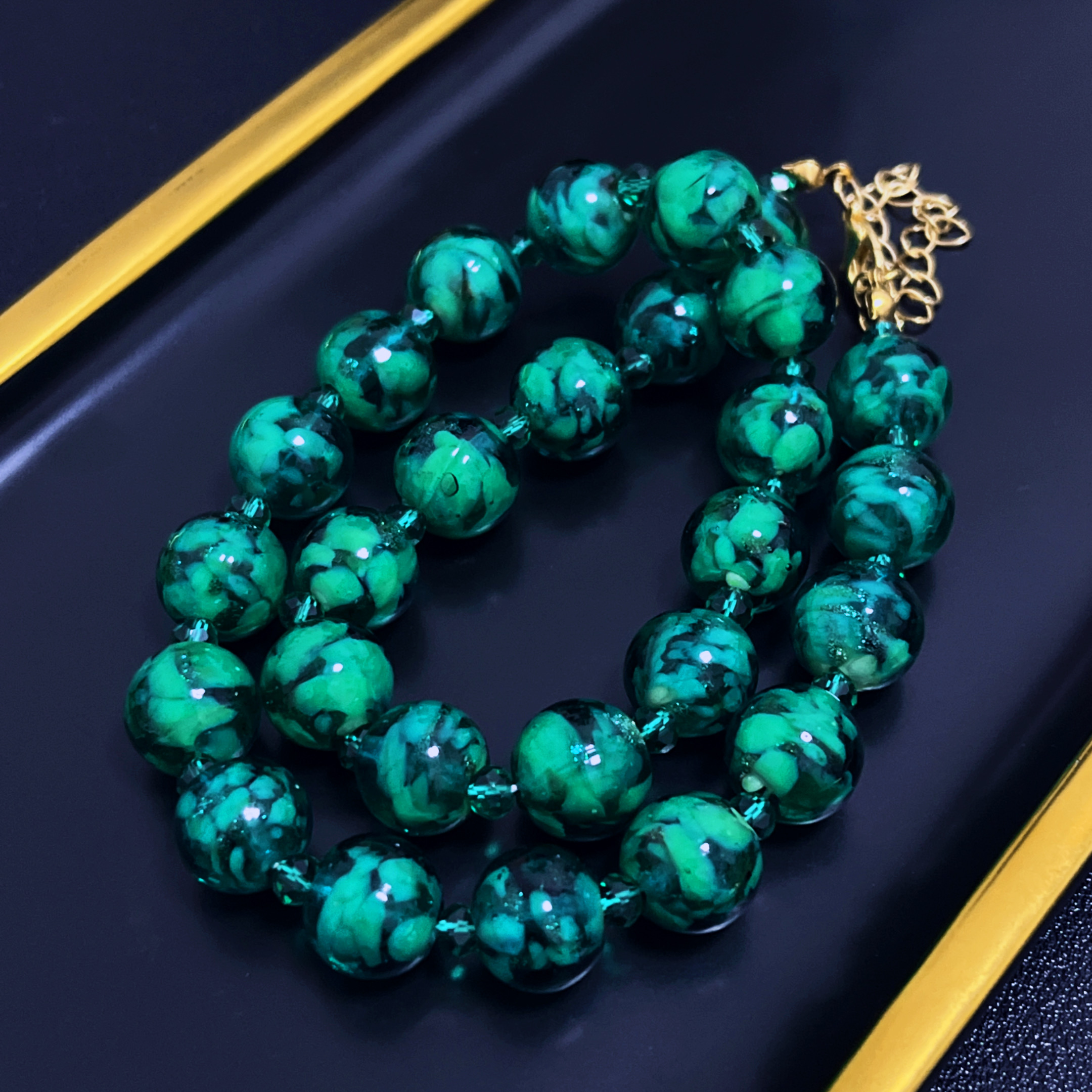 GUZI复古绿色琉璃手绘绿项链中古vintage个性设计感经典锁骨链