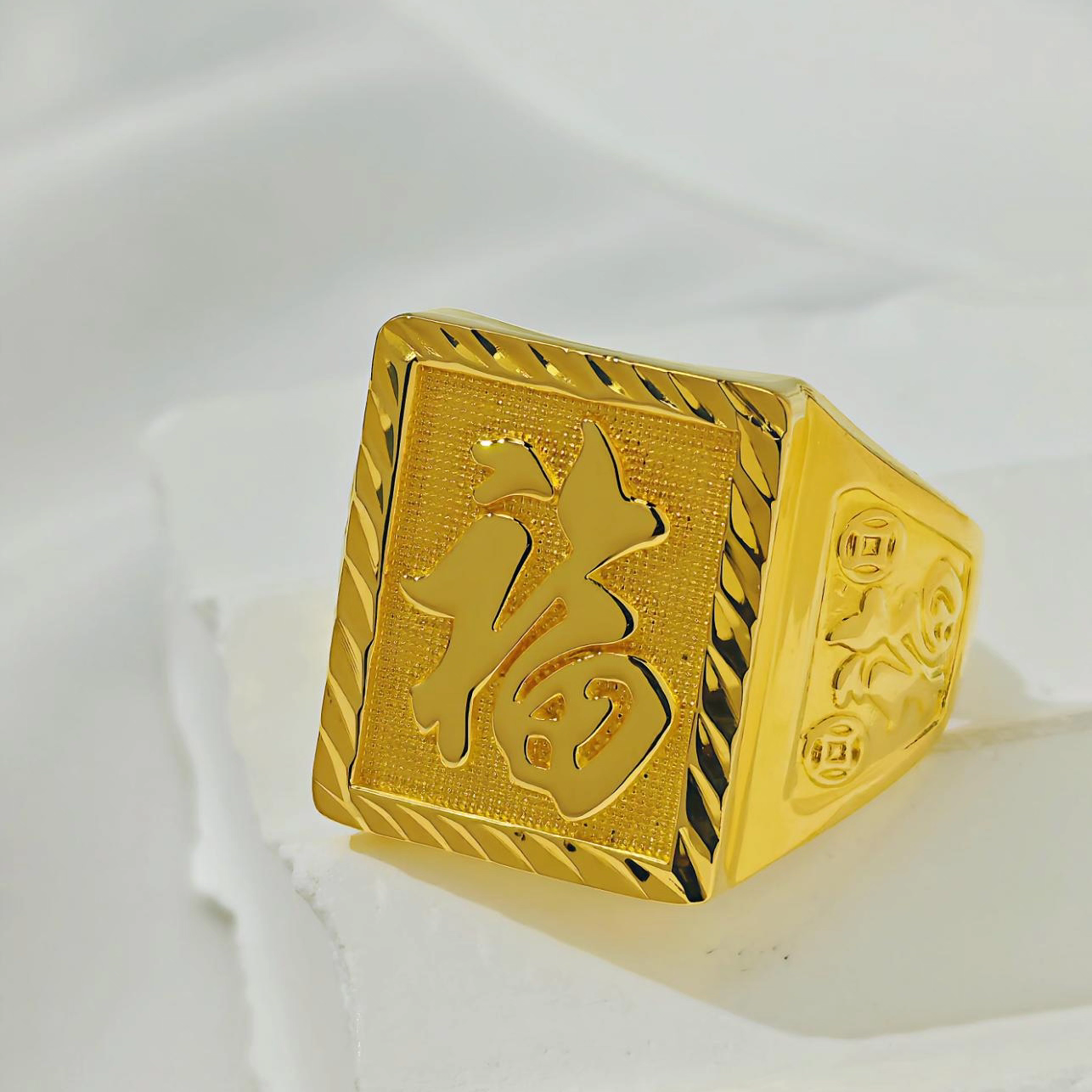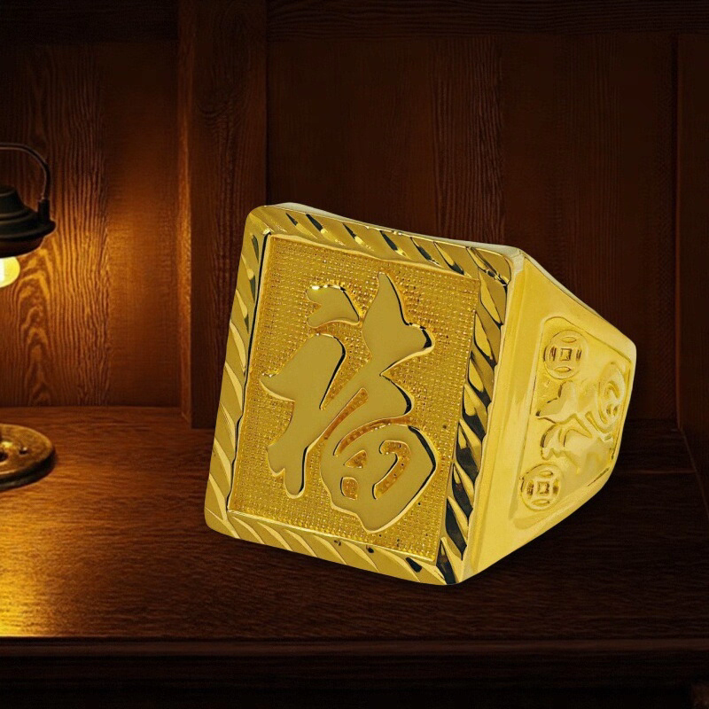 金包银福字戒指男宽面大号霸气古风轻奢活口指环可调节送长辈礼物