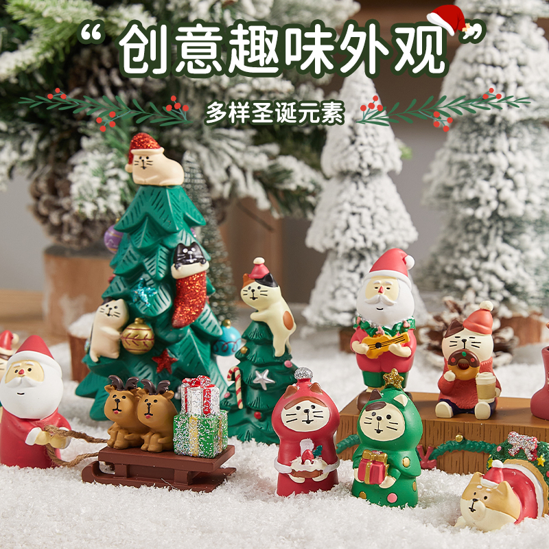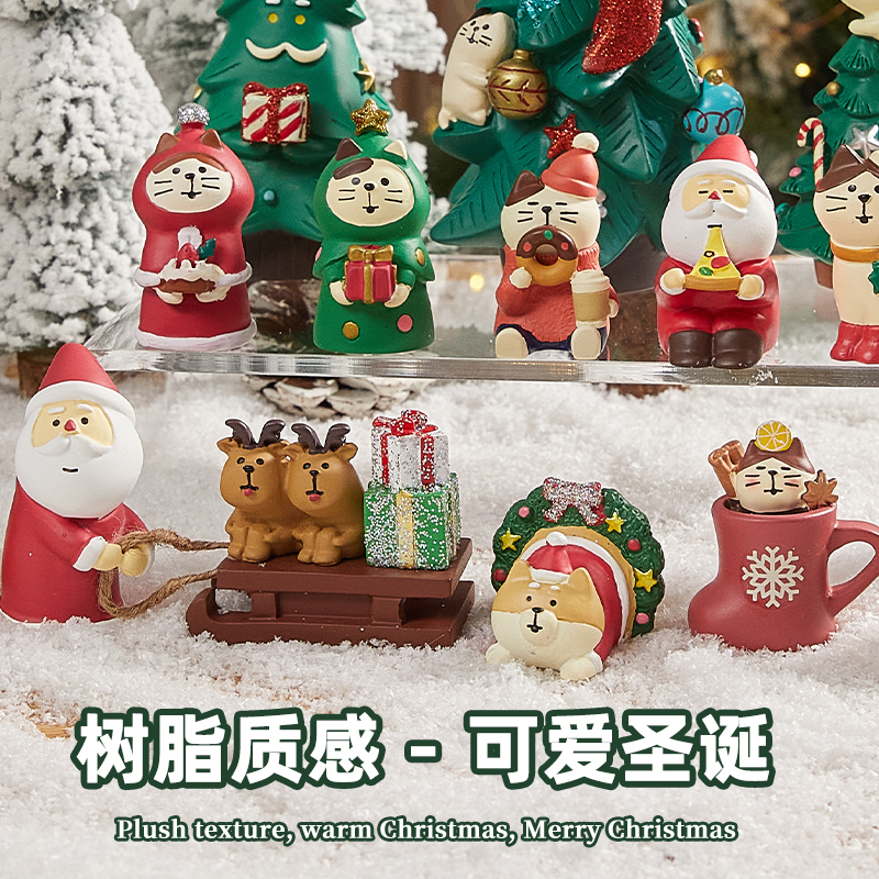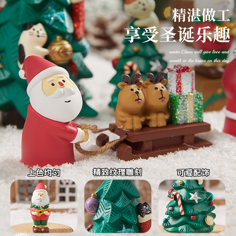 圣诞树脂装饰摆件圣诞老人猫咪节日氛围创意桌面装扮道具场景布置