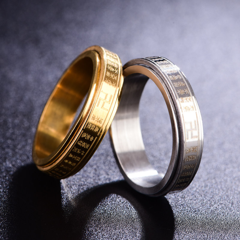 万字心经b戒指男女钛钢本命佛平安指环个性食指尾戒扳指饰品可刻