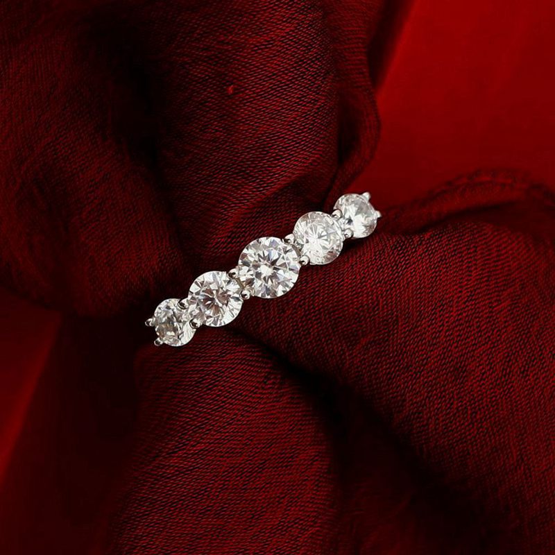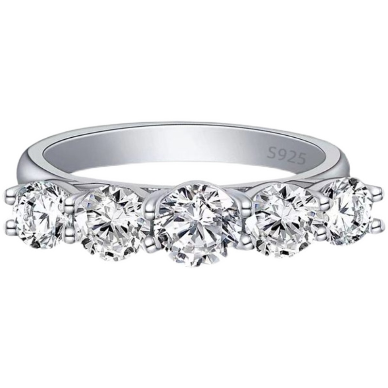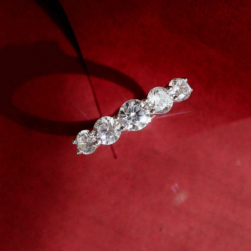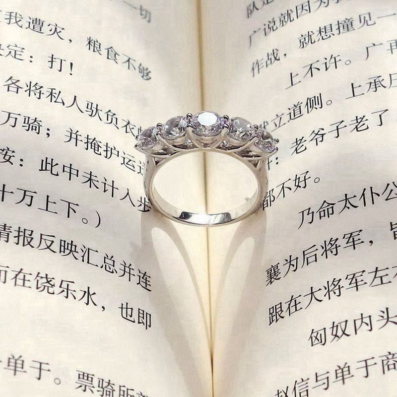 九一饰实拍0.5克拉圆钻925纯银戒指中指食指排钻戒精致法式配饰