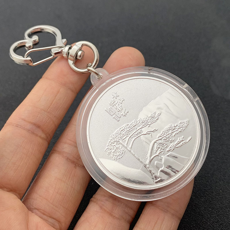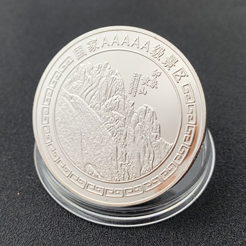 中国旅游景点安徽黄山迎客松风景镀银纪念章 金币工艺硬币纪念币