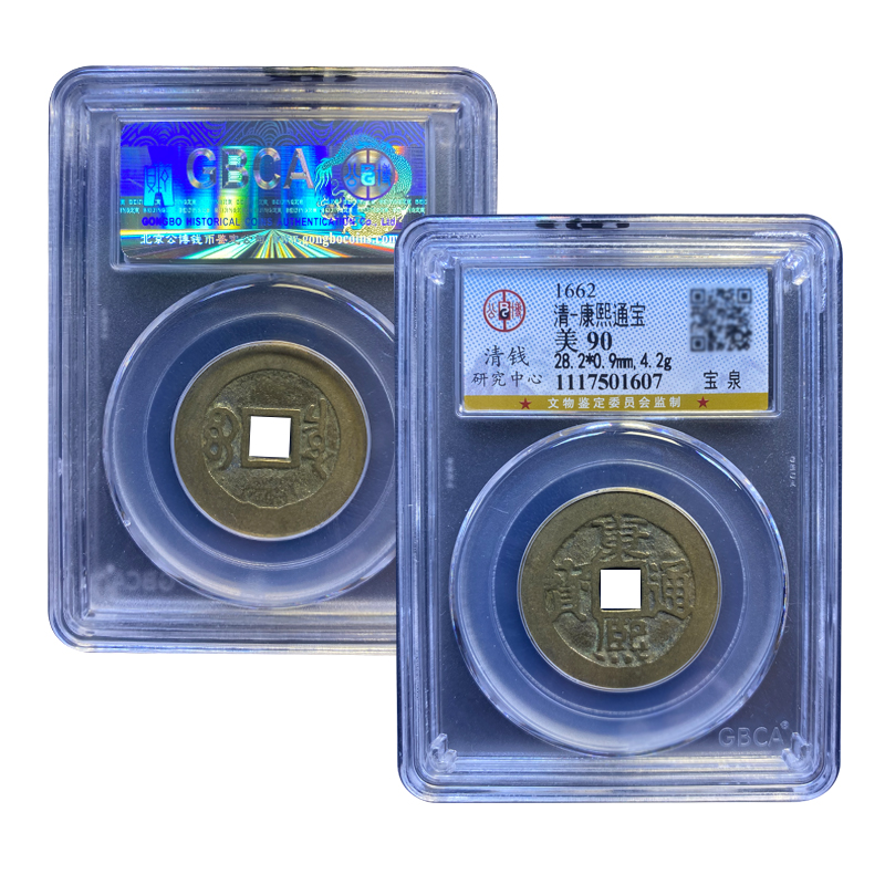 真品五帝钱康熙通宝公博90分铜钱牌古董古钱高分收藏佩戴