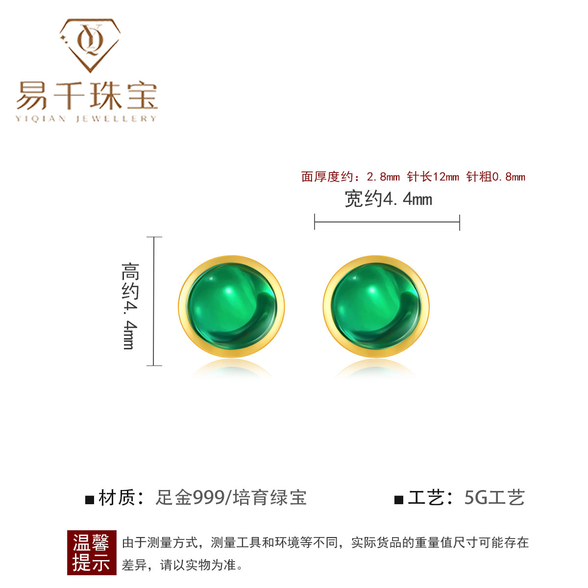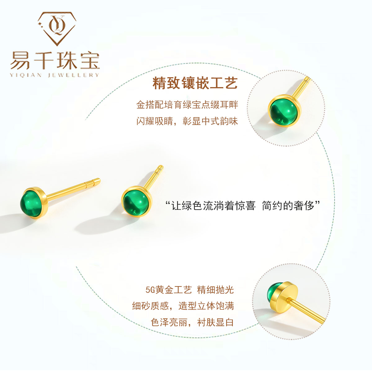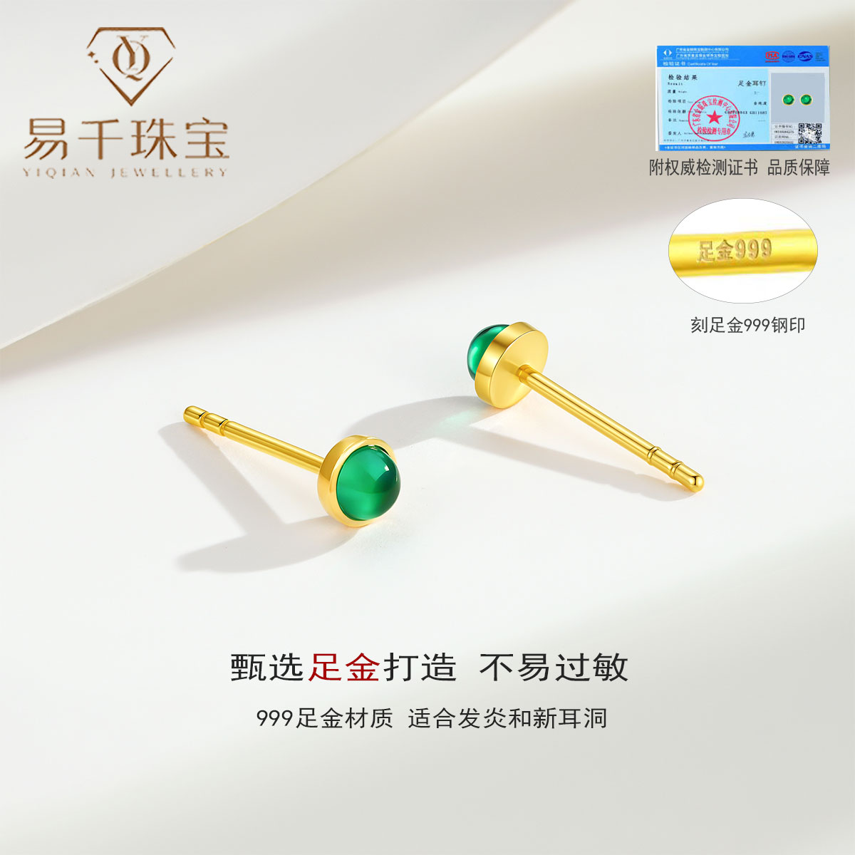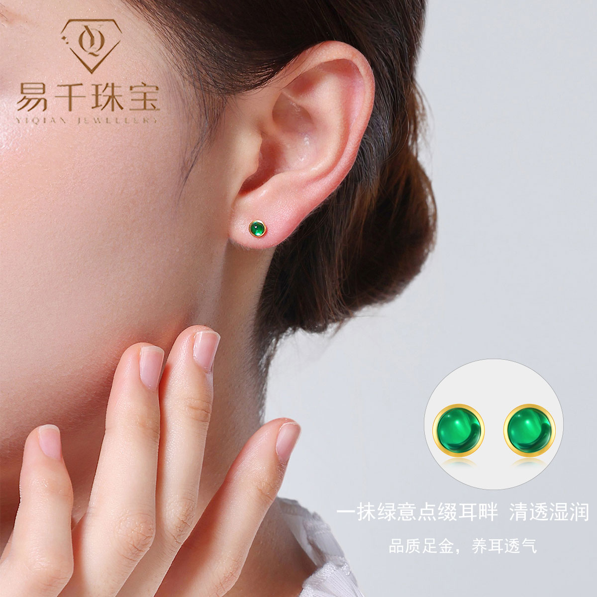 5G黄金耳钉足金999培育绿宝泡泡小耳饰时尚古法金耳针灯泡养耳棒
