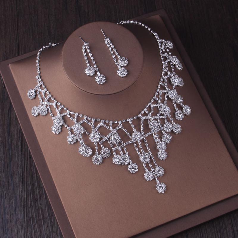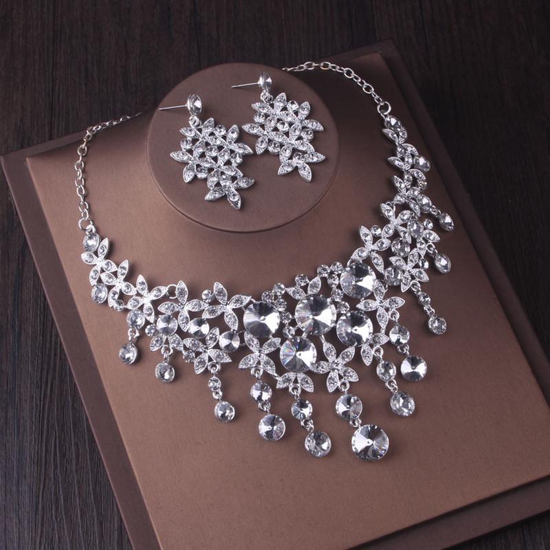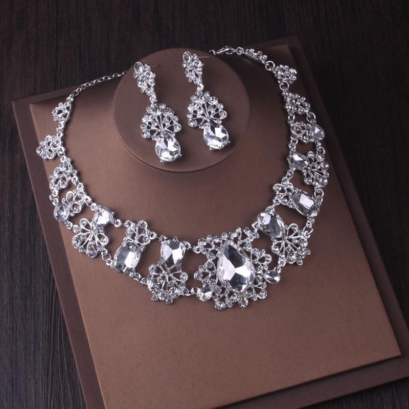 热卖高端大气水晶欧式项链耳环婚纱套链大水钻奢华新娘结婚配饰品