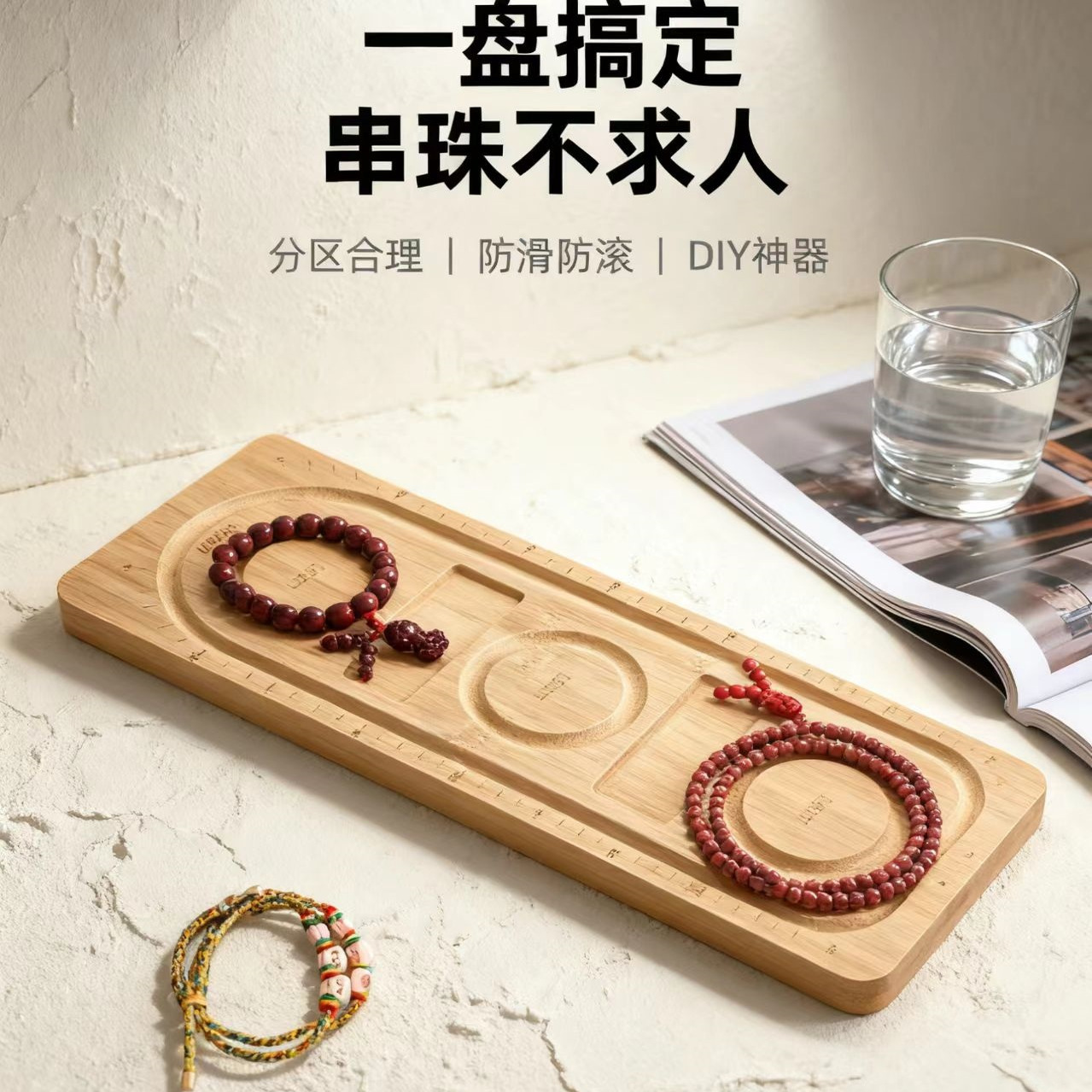手链设计盘串珠盘DIY竹木展示托盘珠宝设计手串手围项链刻度测量