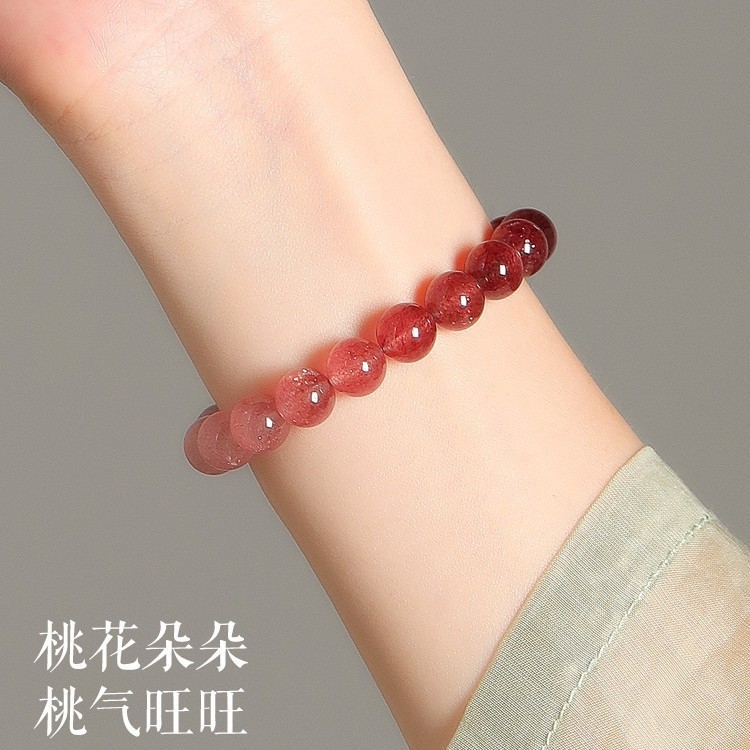心动的信号史策同款天然石草莓晶手链女渐变桃之夭夭手串送女友