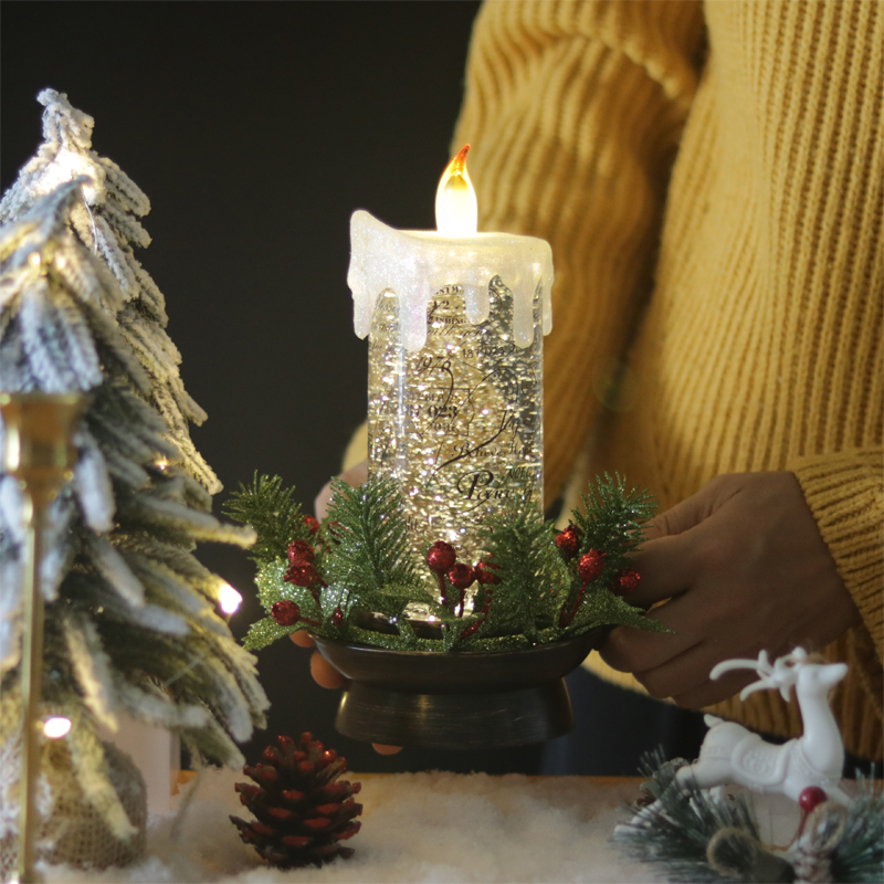 圣诞节北欧电子音乐飘雪八音盒仿真水晶灯蜡烛台礼品装饰布置摆件