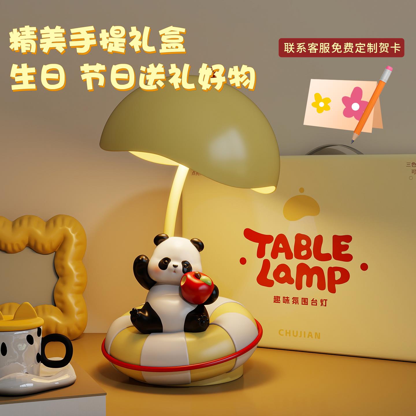 可爱熊猫小台灯卡通儿童房卧室睡眠床头柜夜灯男女孩生日礼物女生