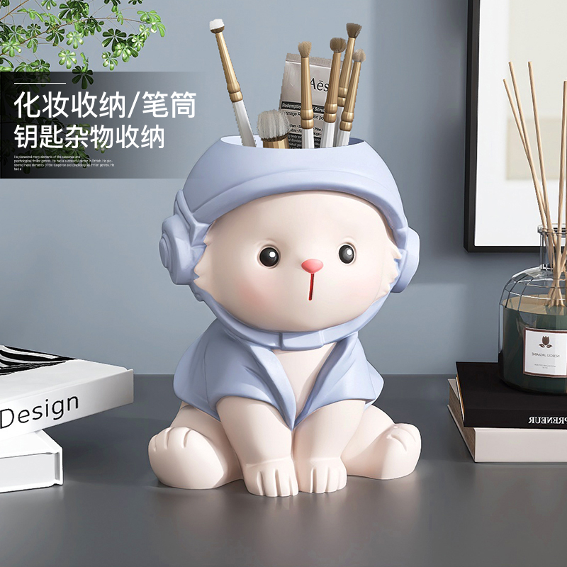 可爱兔子笔筒f摆件家居饰品办公室工位桌面化妆刷眉笔收纳桶小礼