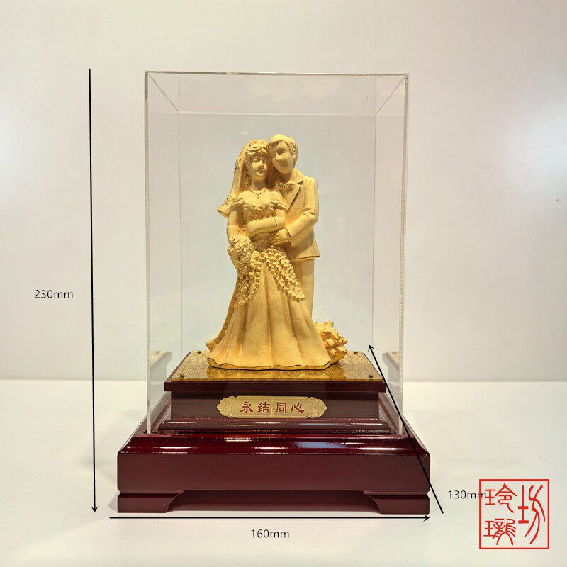 绒沙金黄金摆件婚庆礼喜结良缘心心相印白头偕老装饰品金银工艺品