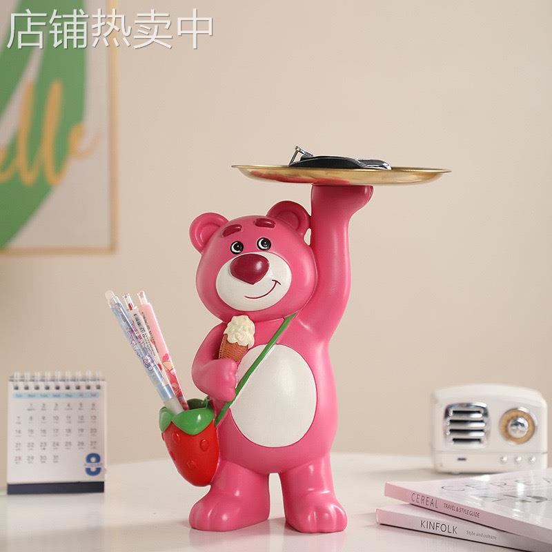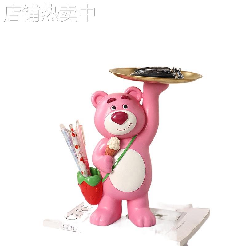 创意玫瑰熊钥匙收纳摆件家居进门入户玄关茶几吧台办公桌面装饰品