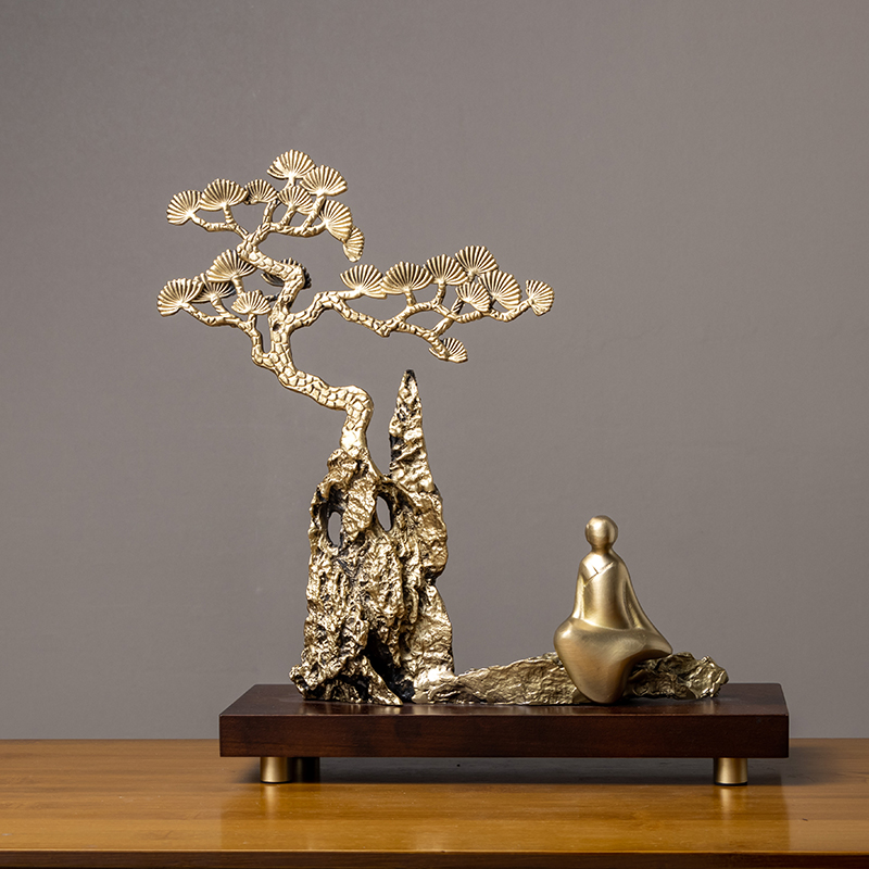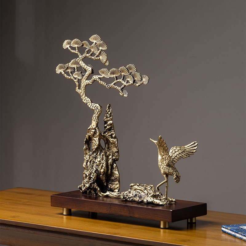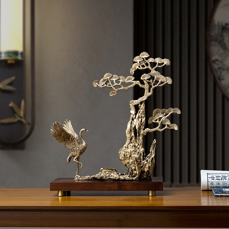 现货速发迎客松摆件新中式客厅仙鹤乔迁新居礼品玄关酒柜办公室装