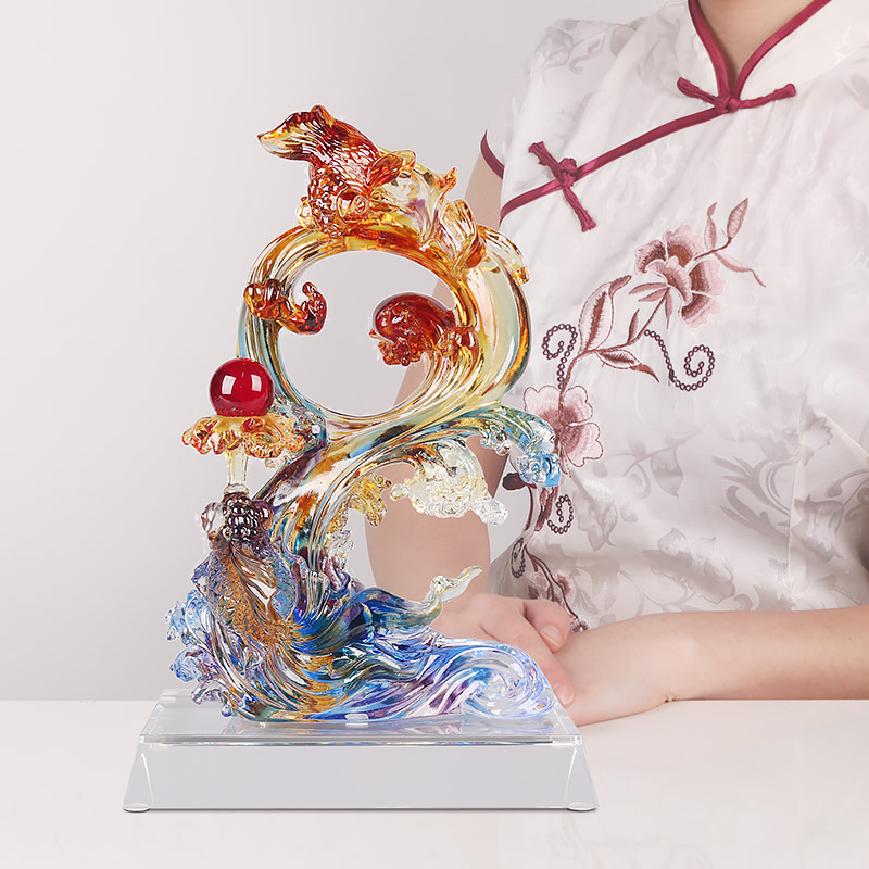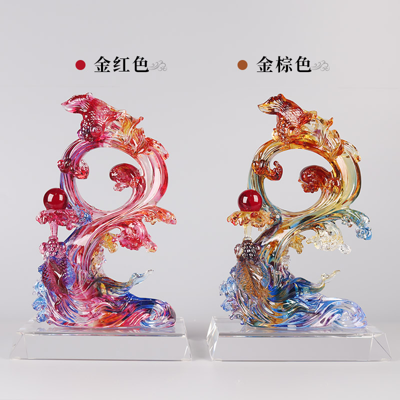 琉璃鱼摆件高档轻奢创意鱼客厅乔迁新居礼品鲤鱼跳龙门装饰工艺品