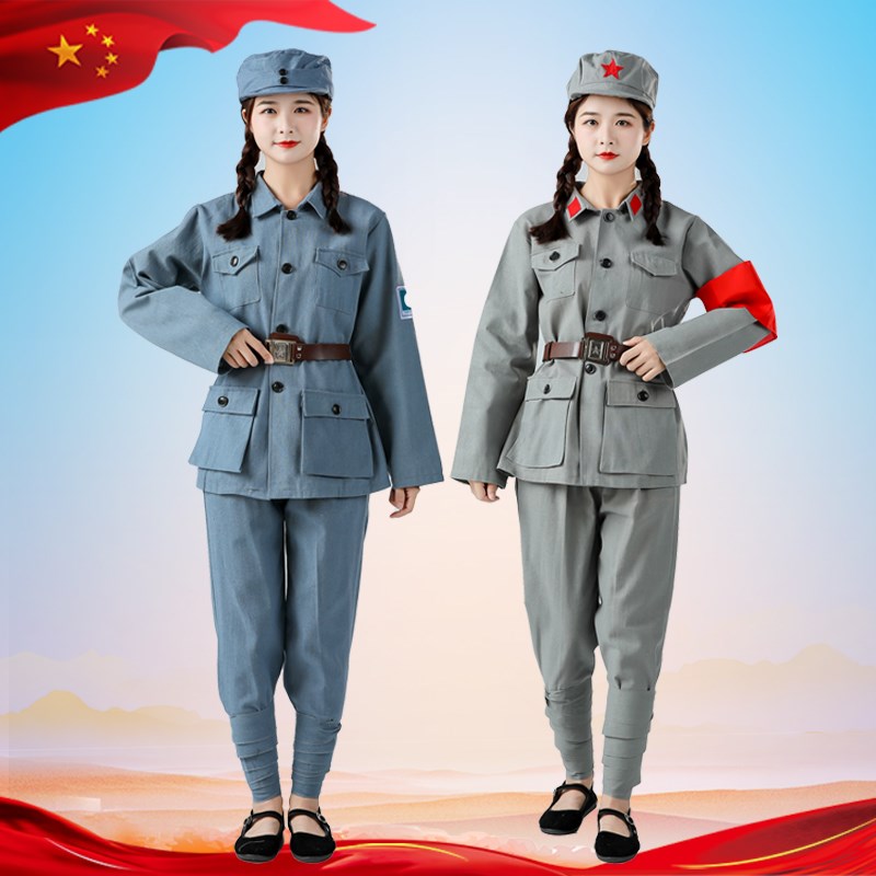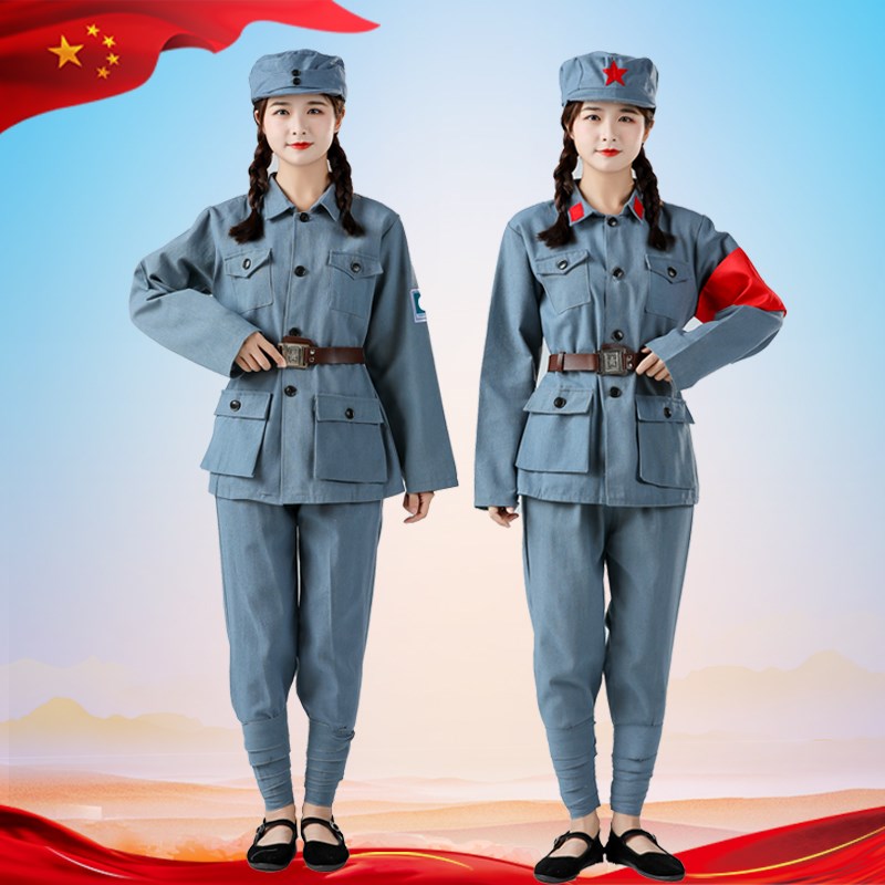 速发红星闪闪棉麻成人演童儿出表演服装抗日影舞怀旧视台红军八路
