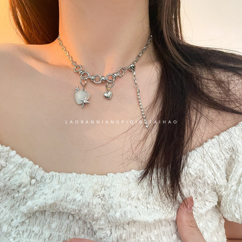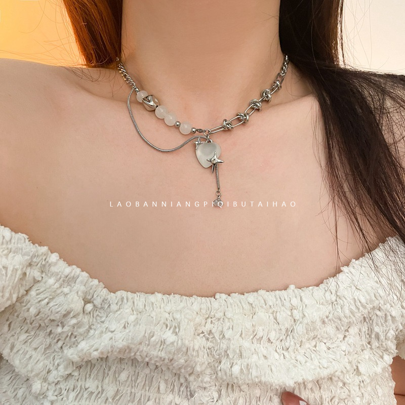 甜酷辣妹磨砂树脂爱心吊坠项链冷淡风百搭串珠锁骨链女手链12973